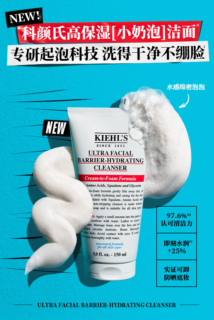 科颜氏高保湿小奶泡洁面150ML 泡沫氨基酸舒缓洗面奶可卸妆