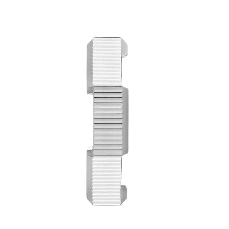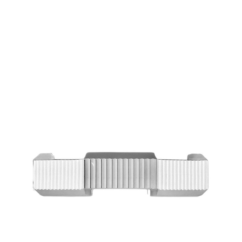 “链接到爱”系列探讨了新的爱情象征背后的现代浪漫主义。它结合了不同的金色色调和表面处理联盟,消除了男性与女性之间的界限。每件作品的设计灵感均源于每个人,以适合自己的方式佩戴,并具有发挥分层卡片的元素。这款带条纹图案的18克拉白金戒指具有可分层的机制。