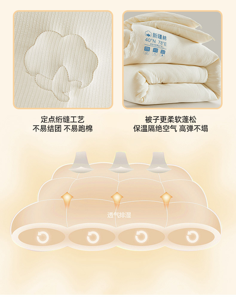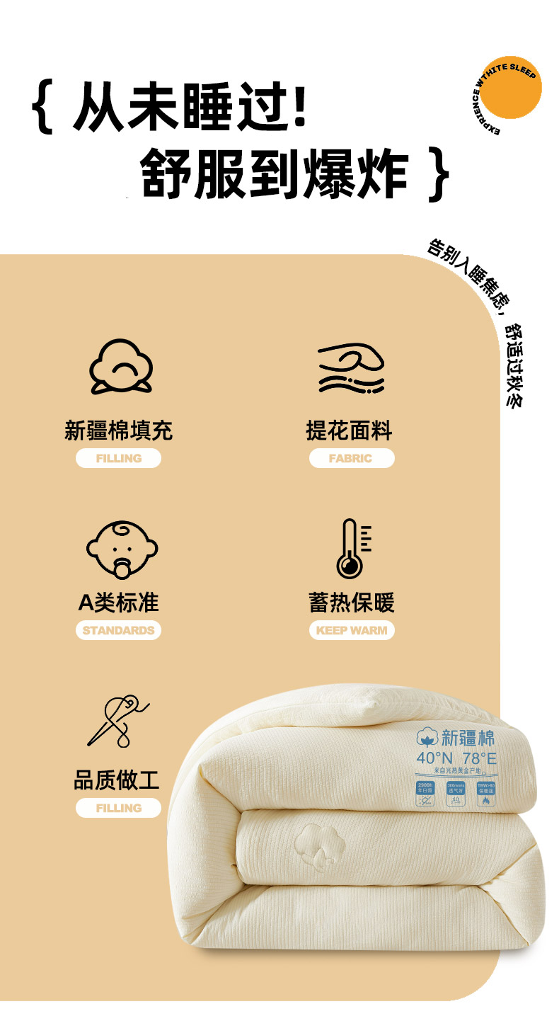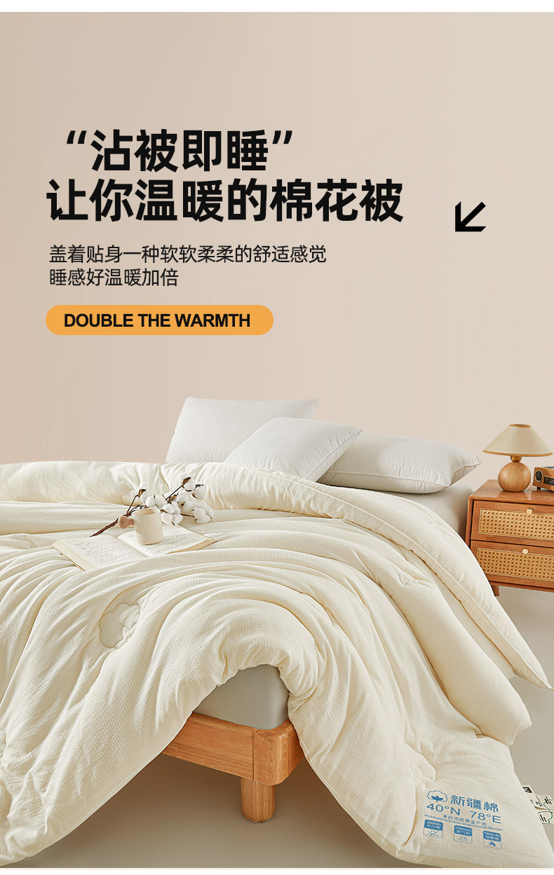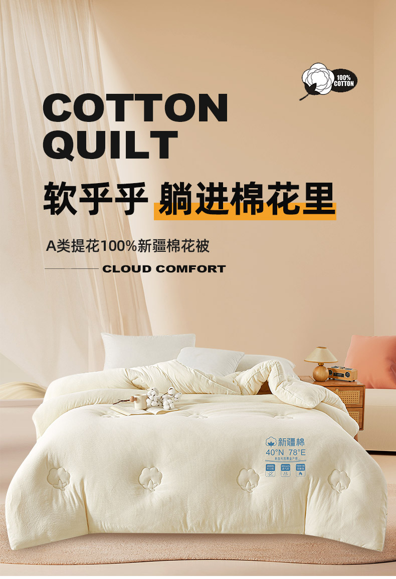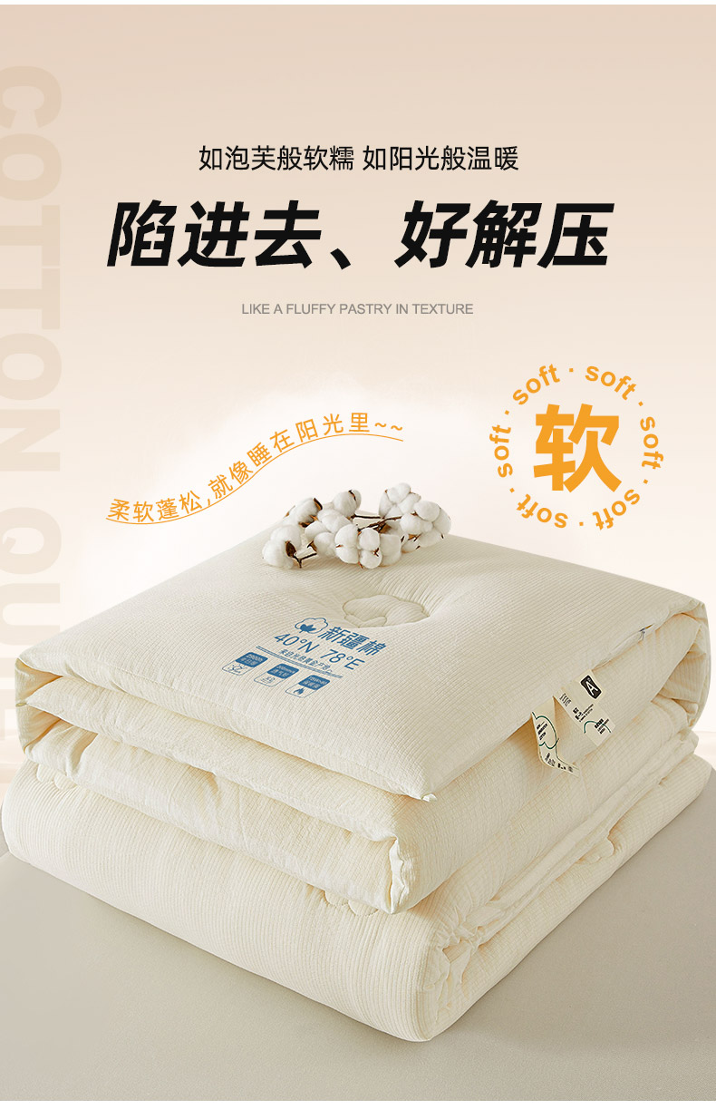 【品牌直发】加倍生活 A类云感泡芙提花新疆棉花被 真棉花、带检测口 春秋被/冬被/加厚冬被 1.5m/2.0m/2.2m被芯