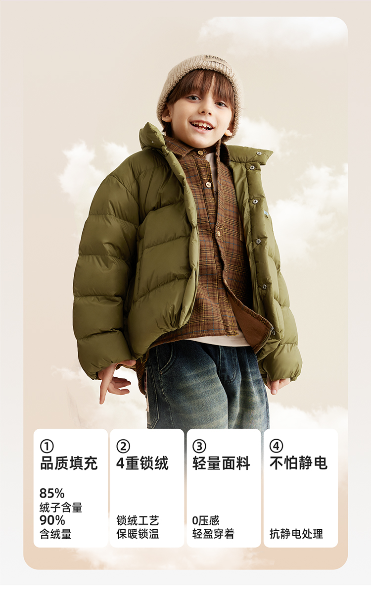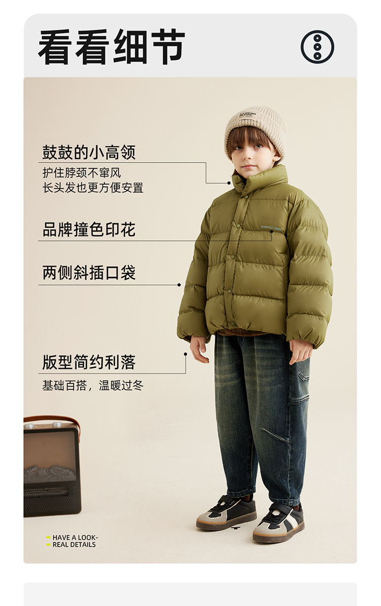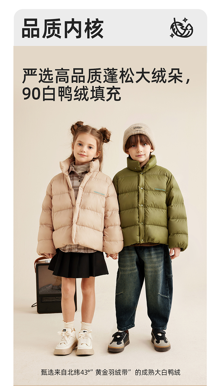 【高蓬松羽绒 轻便有型】亲子款90白鸭绒立领面包羽绒服PDWT2322