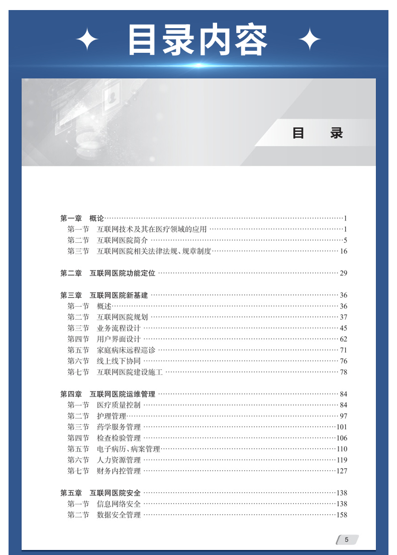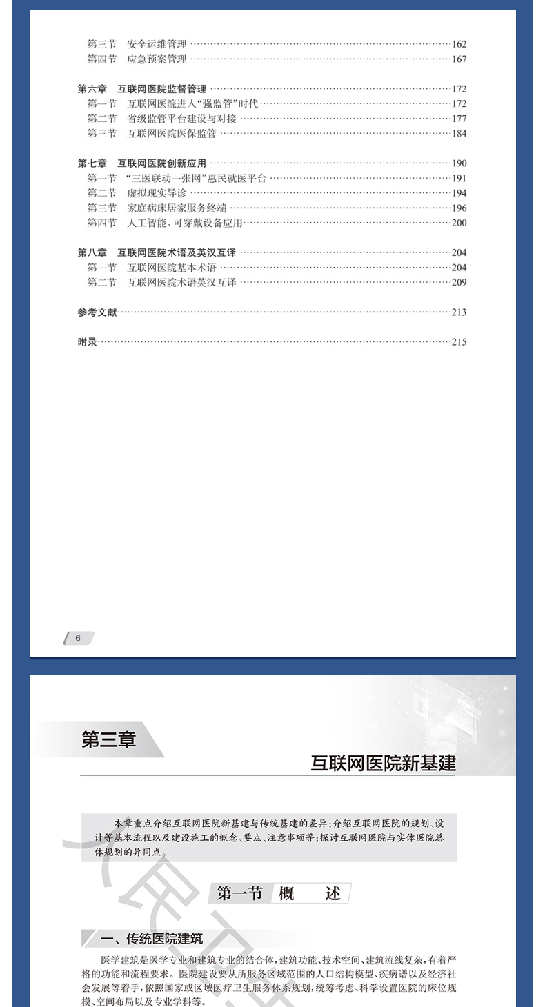 本书依据福建省地方标准《公立医疗机构互联网医院建设规范》,总结国内外互联网医院管理的**进展,主要内容包括互联网医院概论,互联网医院规划、建设,线上门诊、住院服务内容及流程优化设计,互联网医院运维(医疗质量控制、人力资源管理、财务内控管理、药事管理、护理管理、检查检验管理、电子病案管理),互联网医院安全管理,互联网医院监督管理,互联网医院术语翻译,以及附录等内容,将成为我国迄今为止最为完善的关于互联网医院建设与管理的专著。