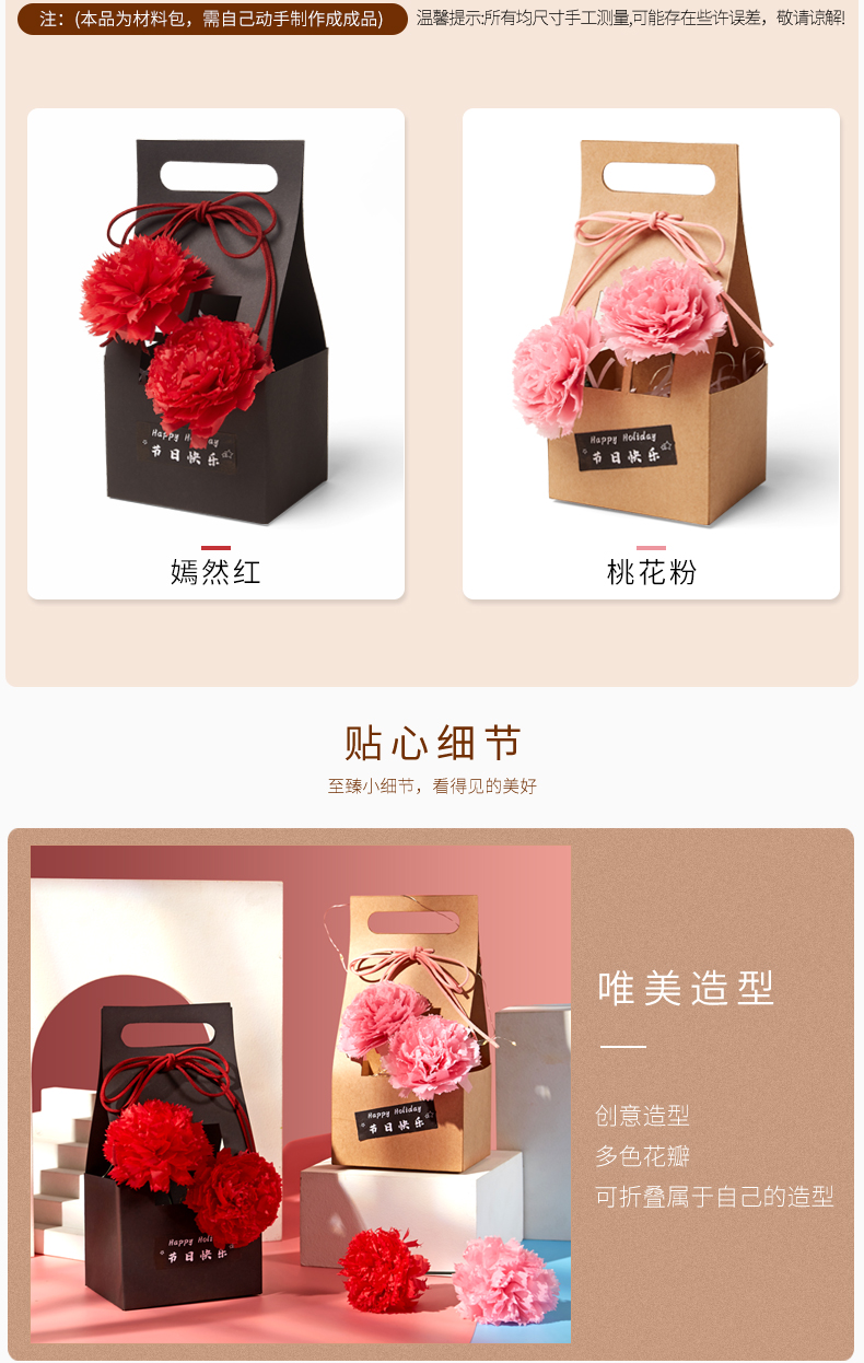 2、细节展示:材质、工艺、做工等;