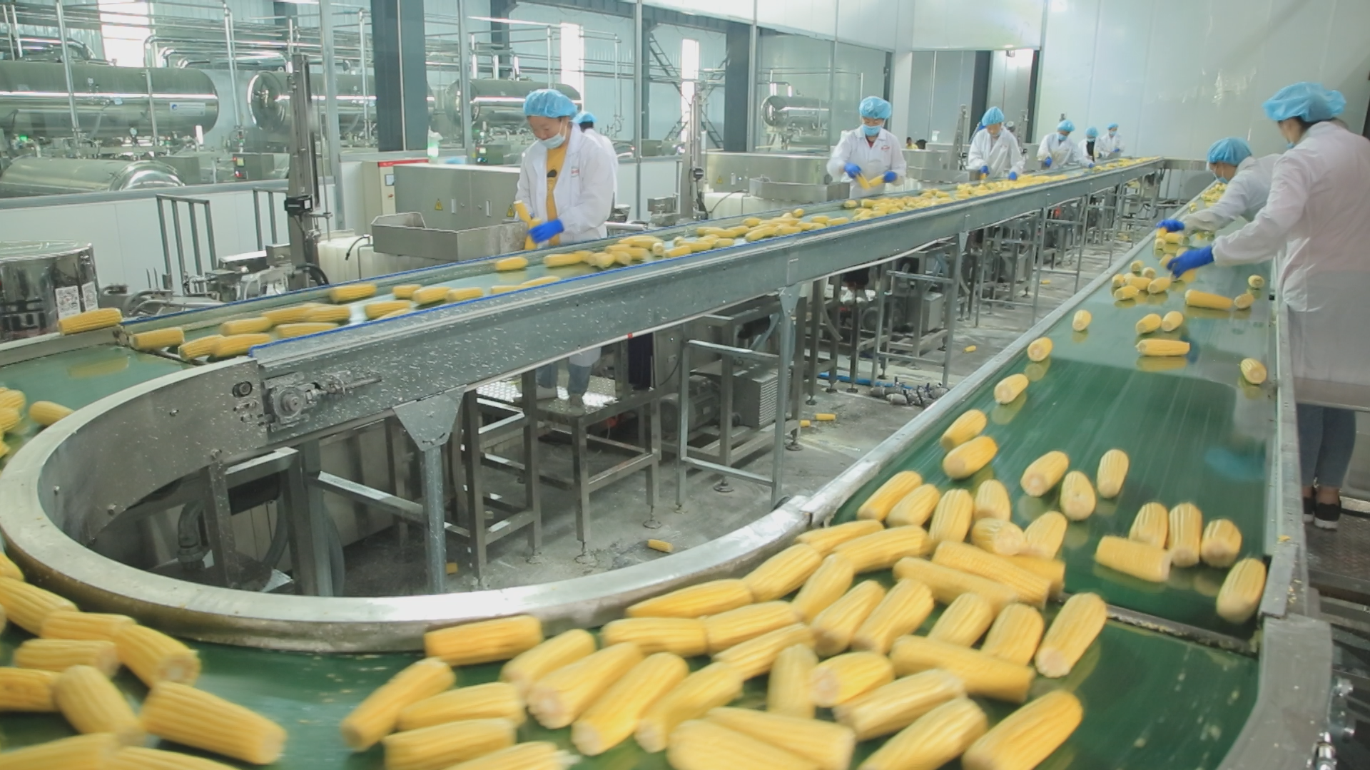 玉米车间流程:扒🌽皮——切根——切头——清洗——自动投袋——真空包装——杀菌——吹水——检查装箱——入库储存~