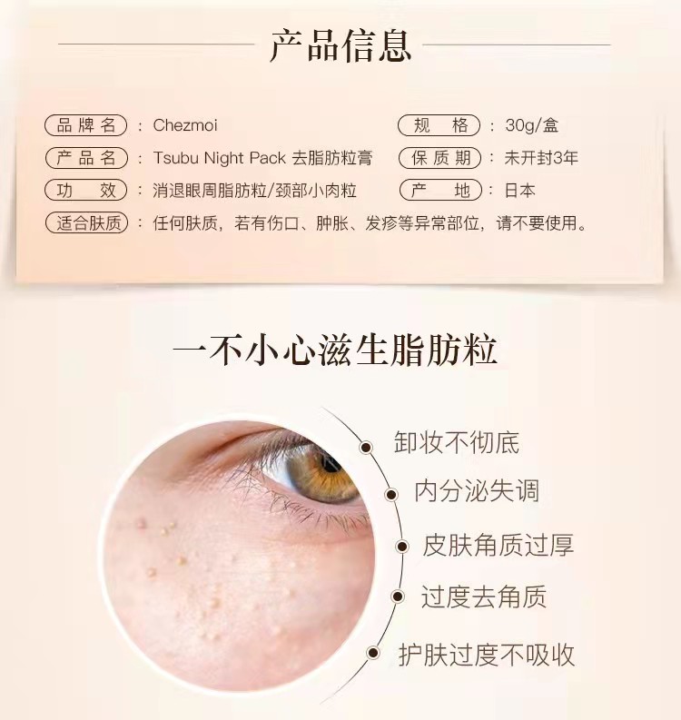【YZ】Che mozi日本脂肪粒去除膏女生祛眼部面部油脂粒肉粒软化角质眼霜