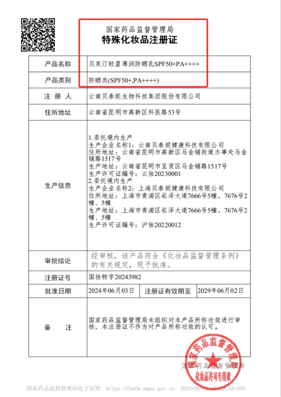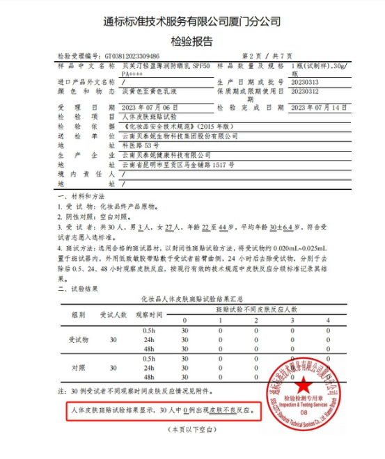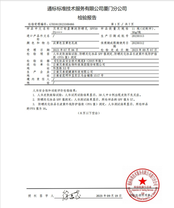 贝芙汀 背靠上市大品牌-专业 安全 •痘肌 敏感肌 油皮 干皮 都可以放心使用 防晒特证、斑贴测试、人体功效测试样样都不输的! 防晒特证 国家药监局颁布,特证加持防晒硬实力 通标人体斑贴测试 SPF、PA值权威验证
