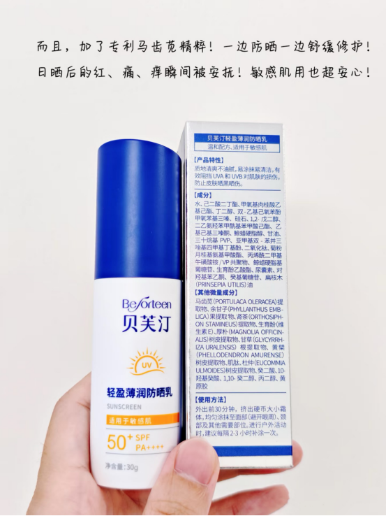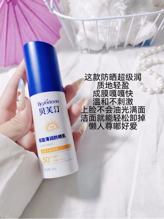 🌈【贝芙汀轻盈薄润防晒乳SPF50+】👉痘肌 ,敏感肌,油皮干皮都可以放心使用 上市公司贝泰妮旗下子品牌,🌸薇*娜同厂 同源 📣6重防晒体系❗️