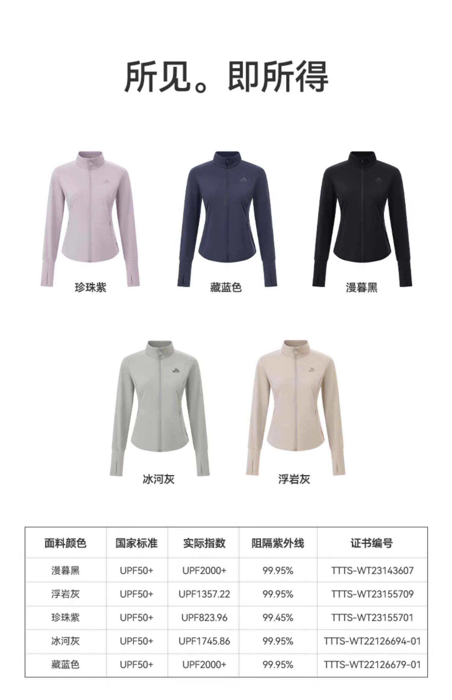 伯希和户外立领防晒衣女夏季轻薄冰丝皮肤衣修身跑步专业防晒服