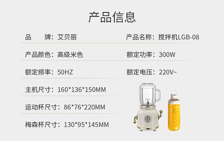 Abereve 双杯搅拌机LGB-08榨汁机料理机双杯家用