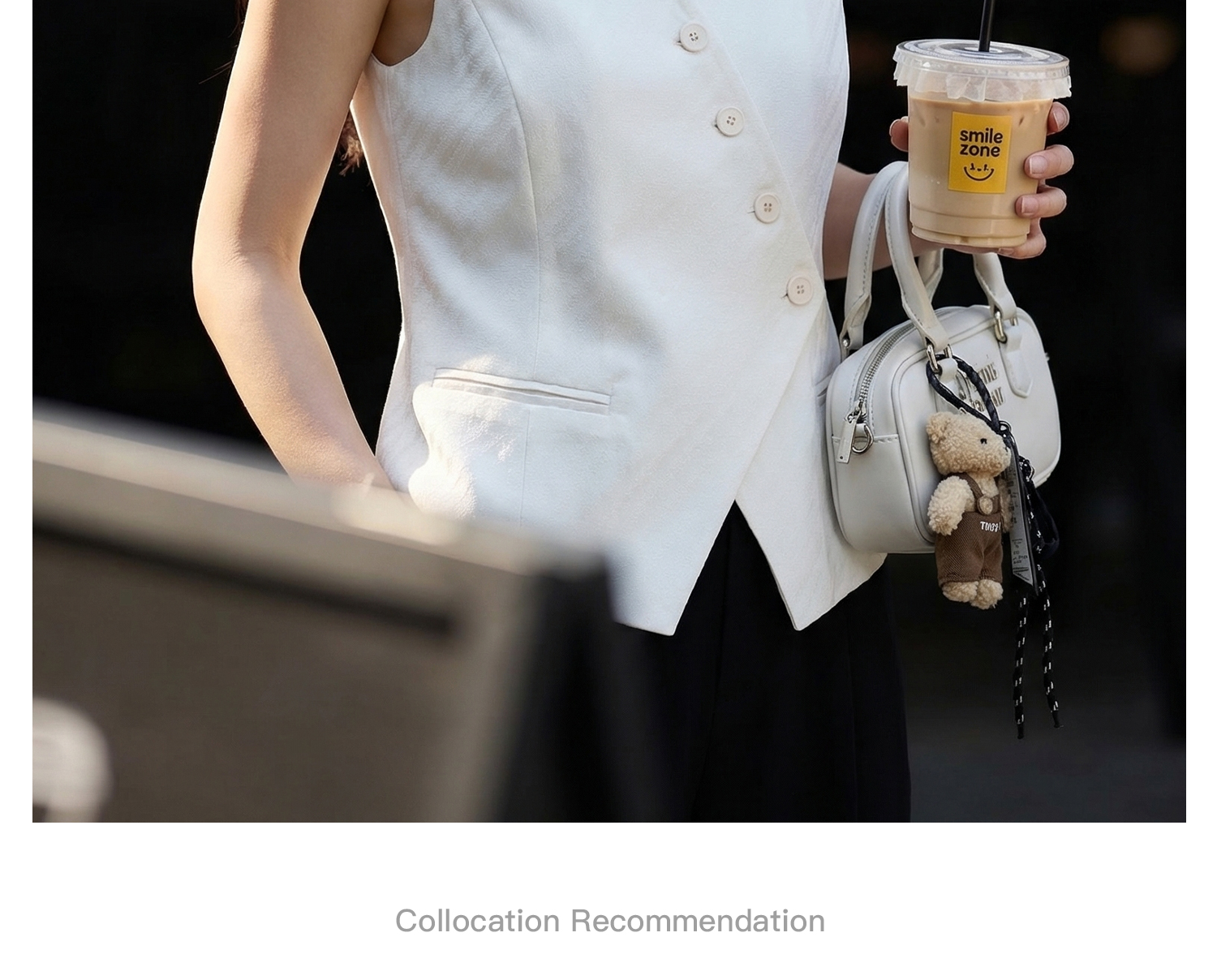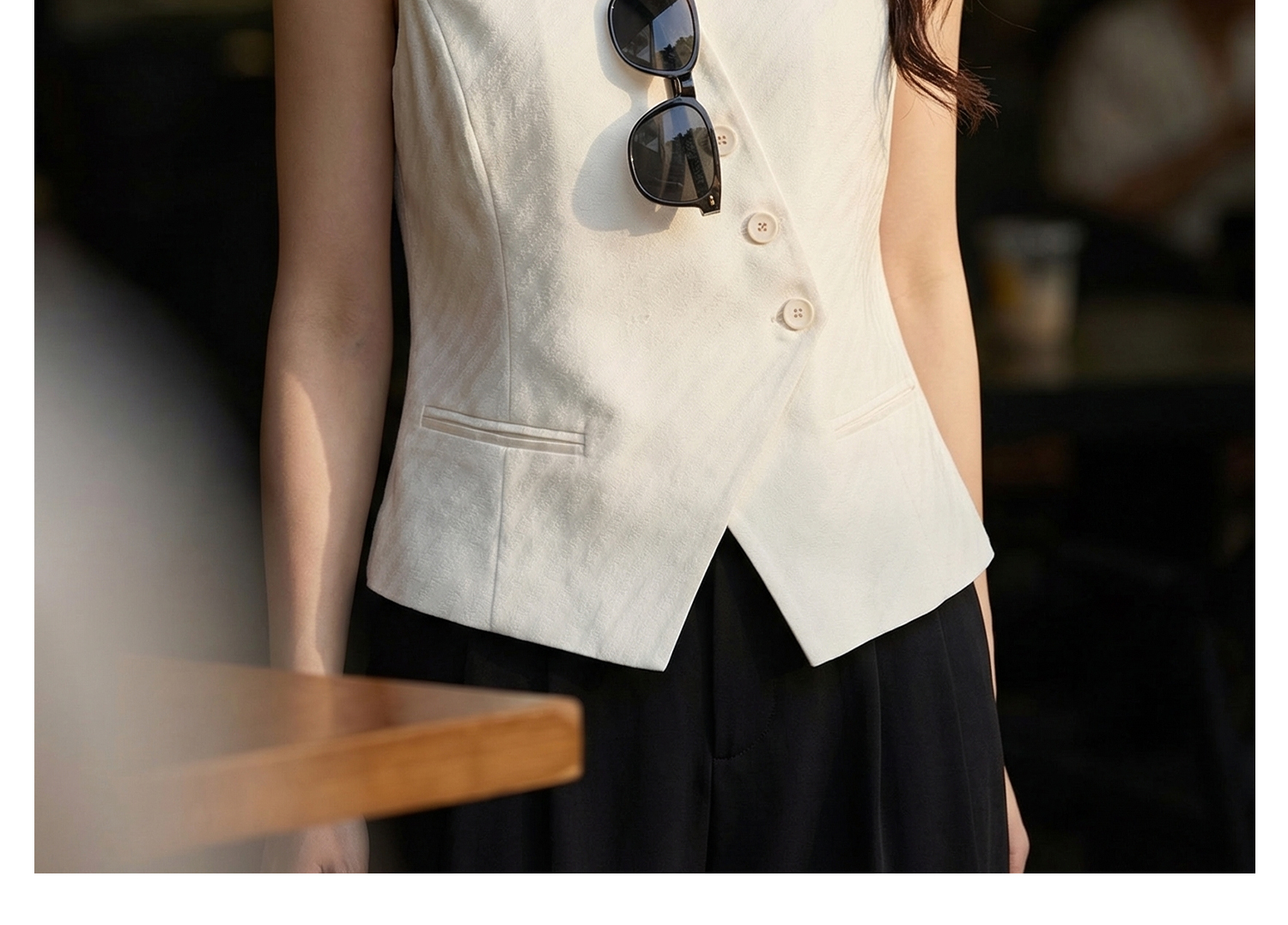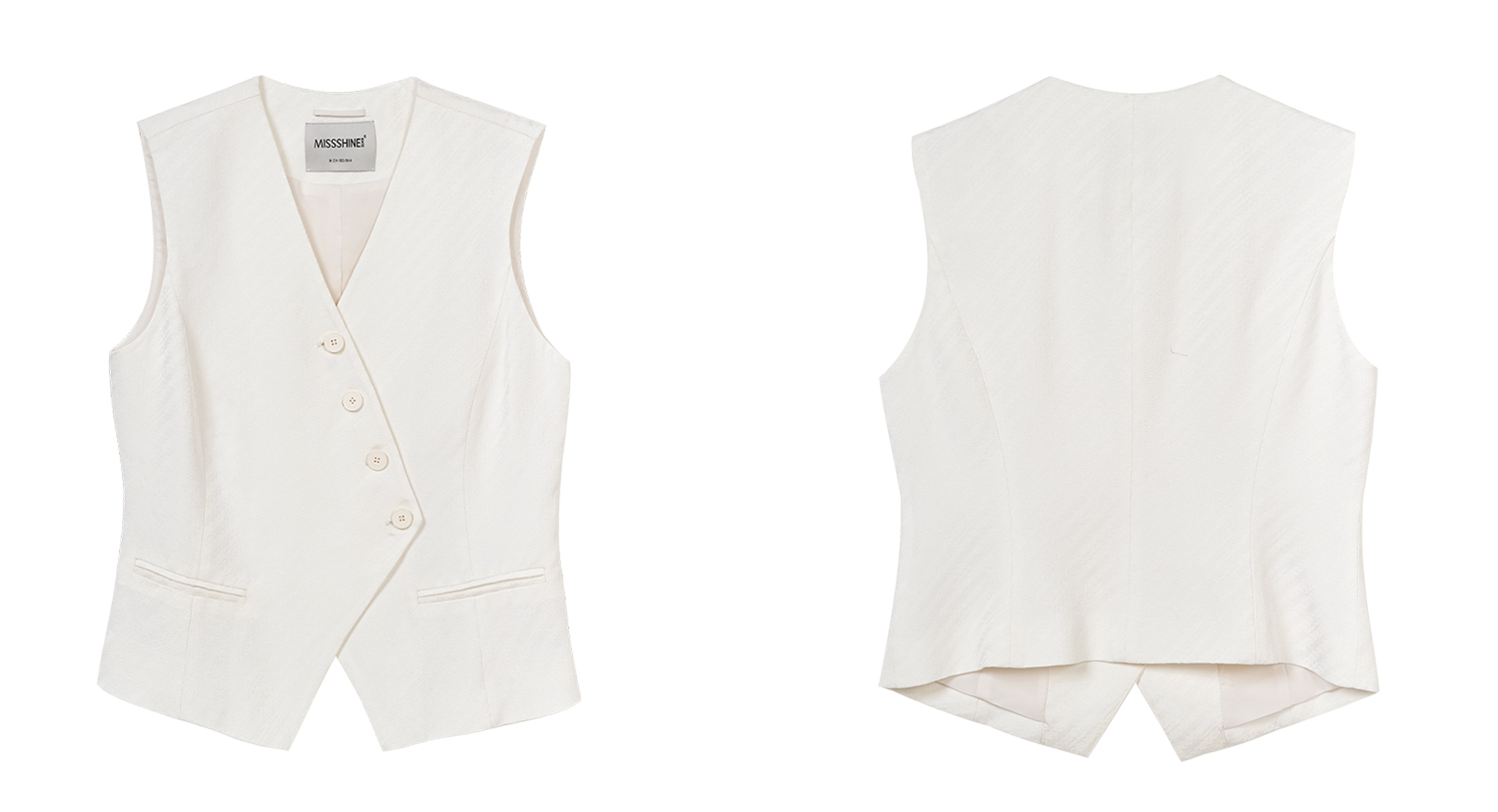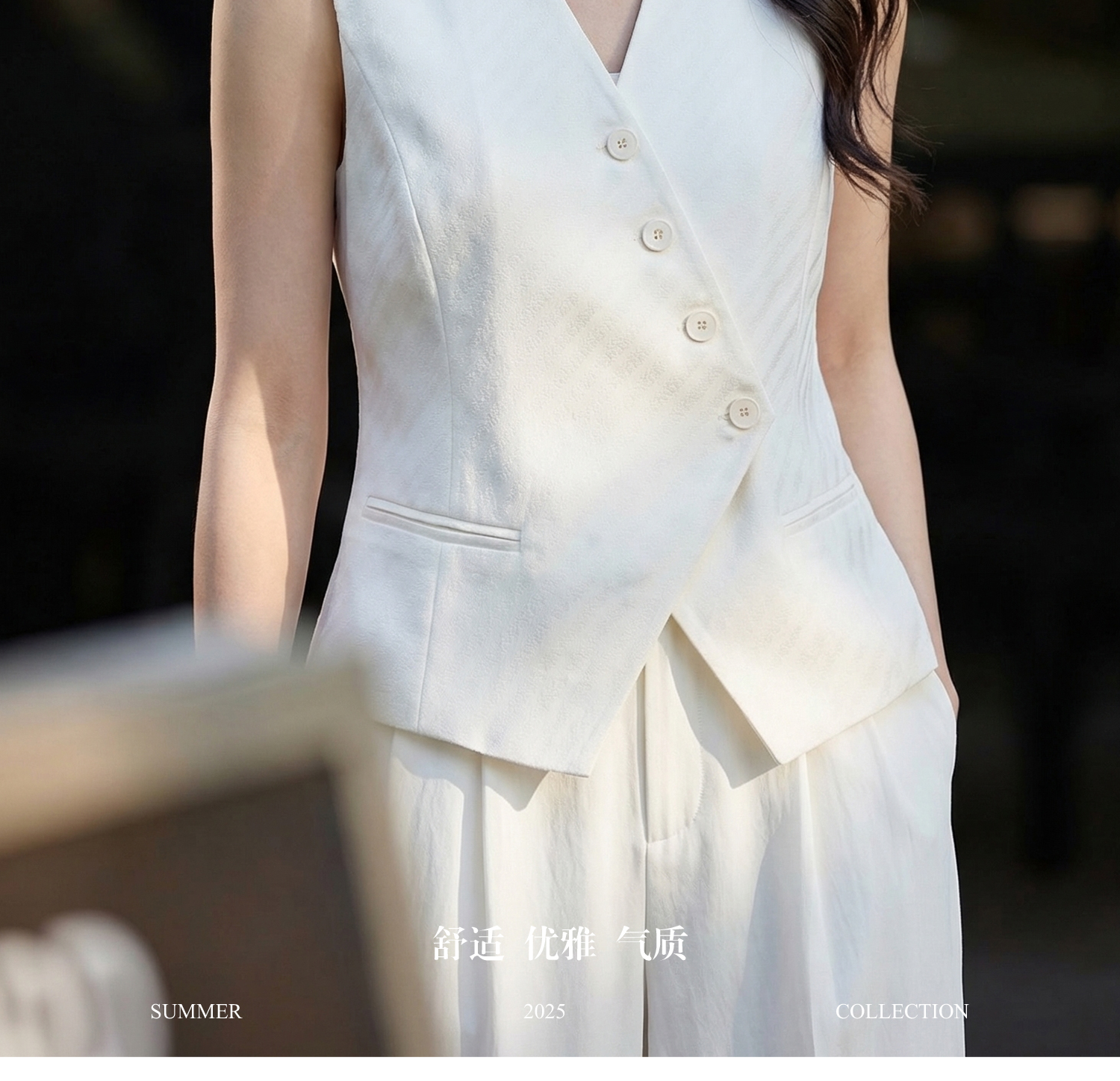 米思阳2025初秋新款设计感不对称高定立裁版型斜条纹马夹收腰马甲4543