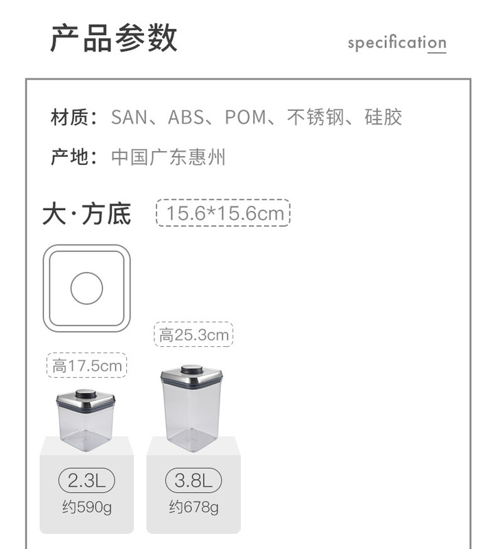 OXO OXO 奥秀不锈钢一键启闭储物罐(小方底2L) OGGC3106200
