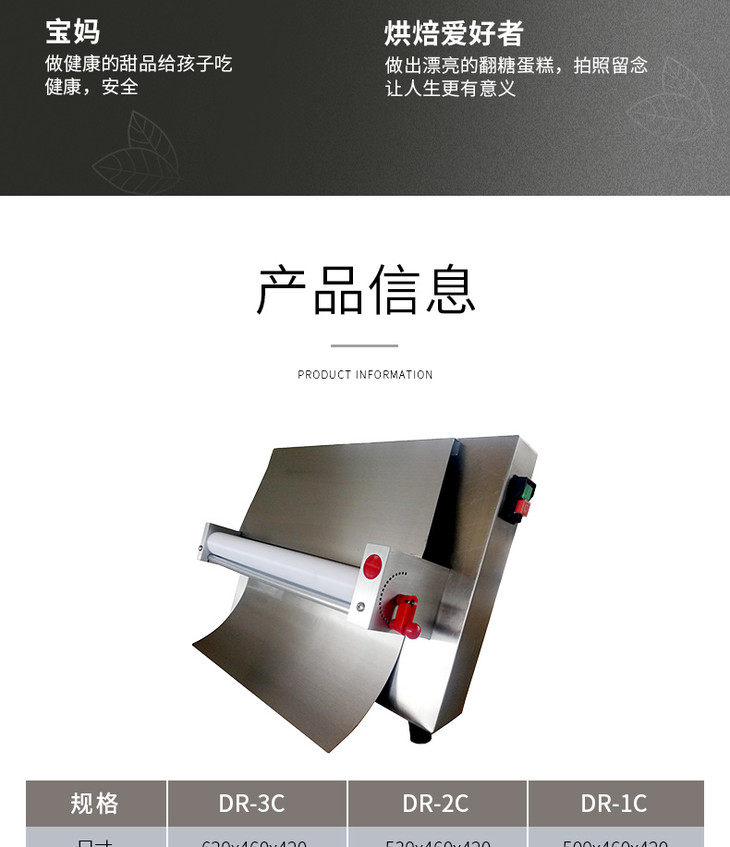 1mm厚18寸宽翻糖皮机Fondant Sheeter 不锈钢电动翻糖蛋糕压面机
