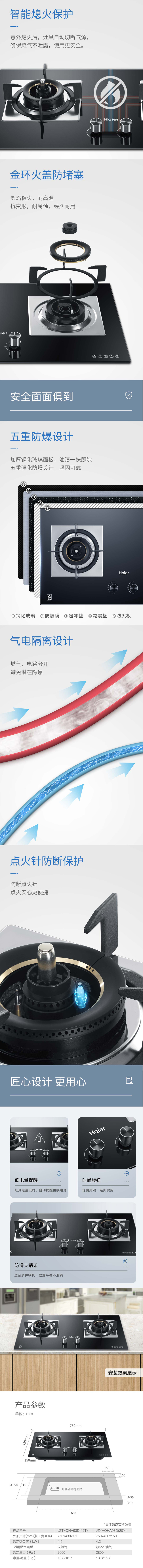 海尔(Haier)(509509 )燃气灶 嵌入式灶具 家用双灶具可用天然气 猛火匀喷 防干烧 无锅自熄火/JZT-QHA93D(12T)