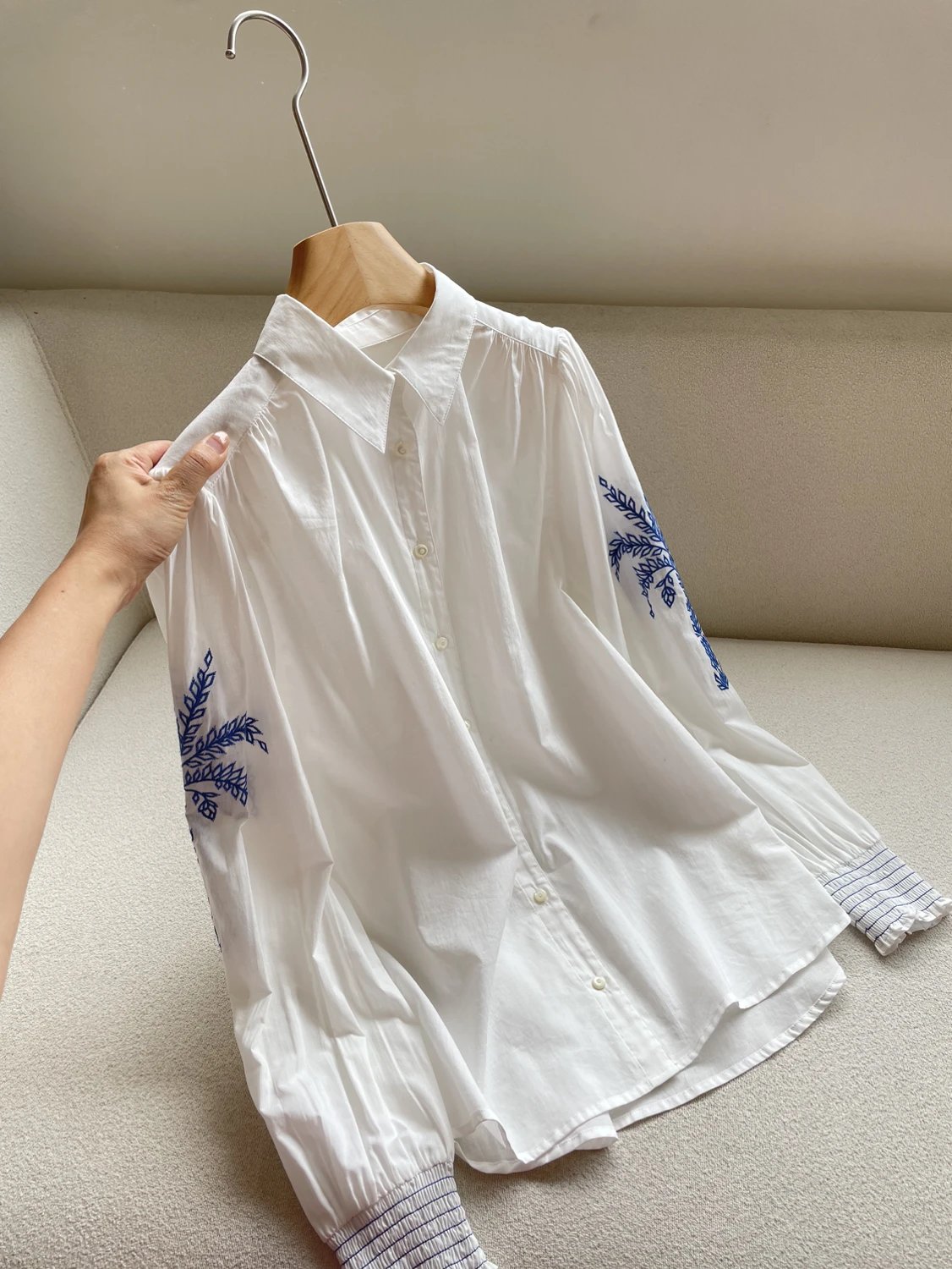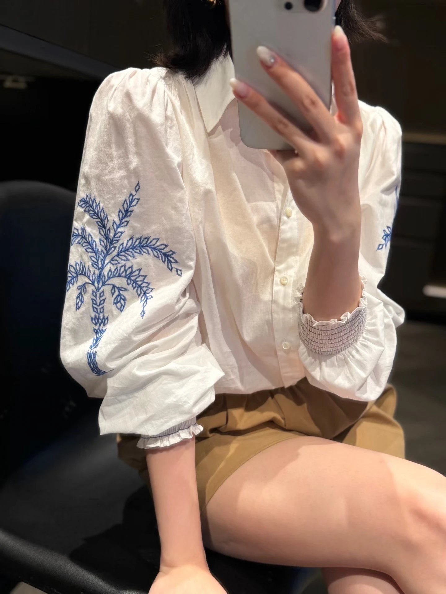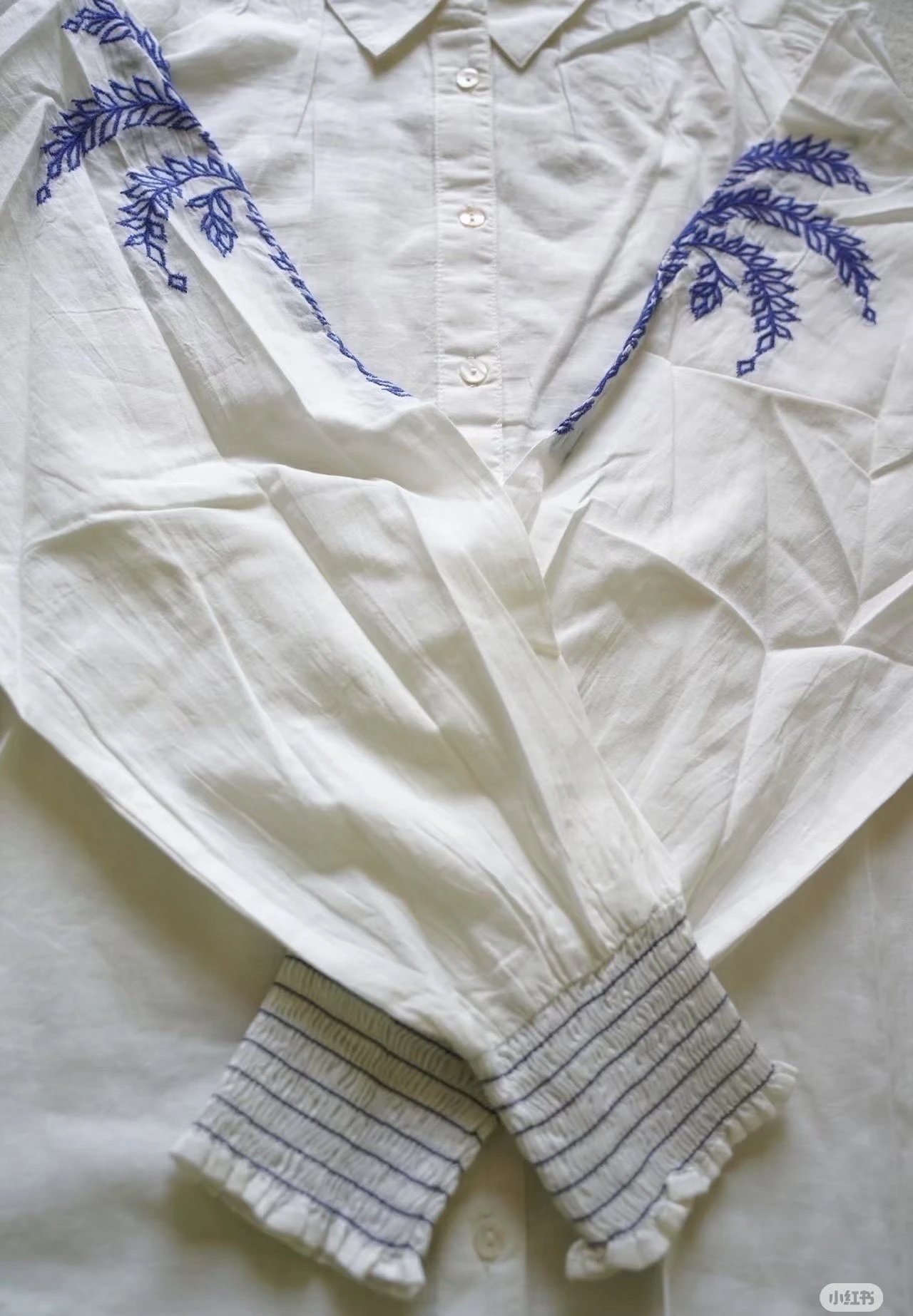 重磅渠道 harftford白衬衫 100S有机棉 刺绣提花法式优雅白衬衣上衣度假休闲