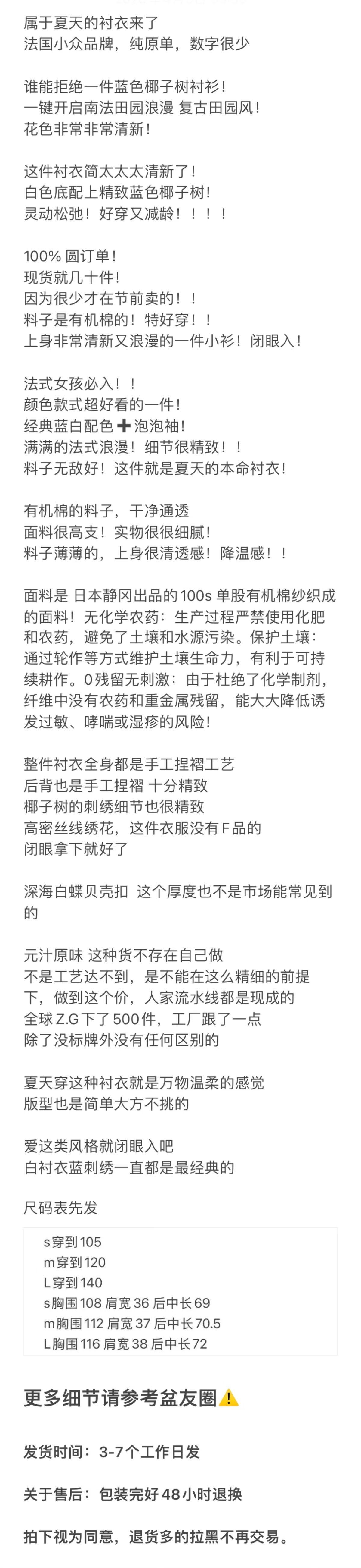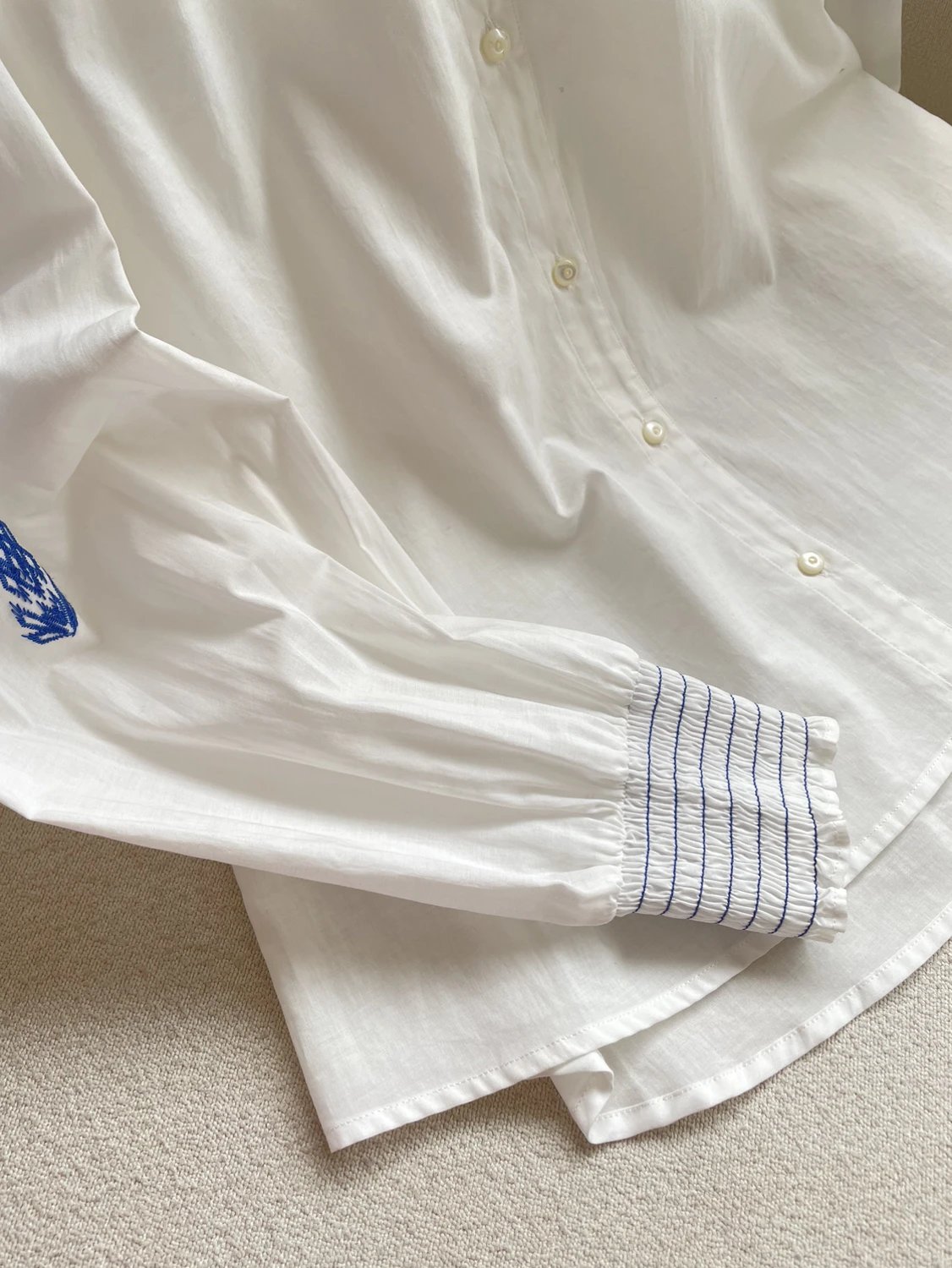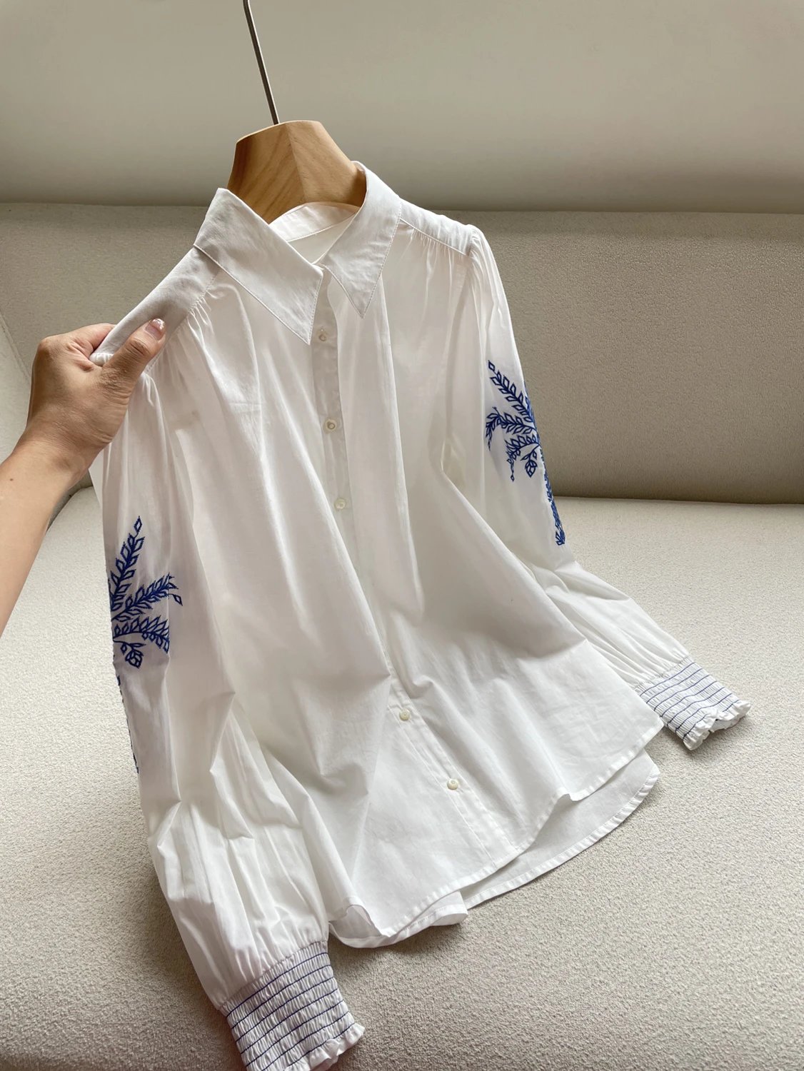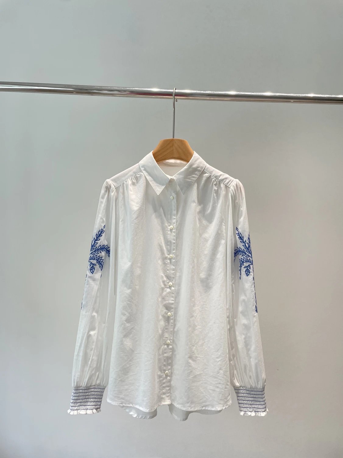 重磅渠道 harftford白衬衫 100S有机棉 刺绣提花法式优雅白衬衣上衣度假休闲