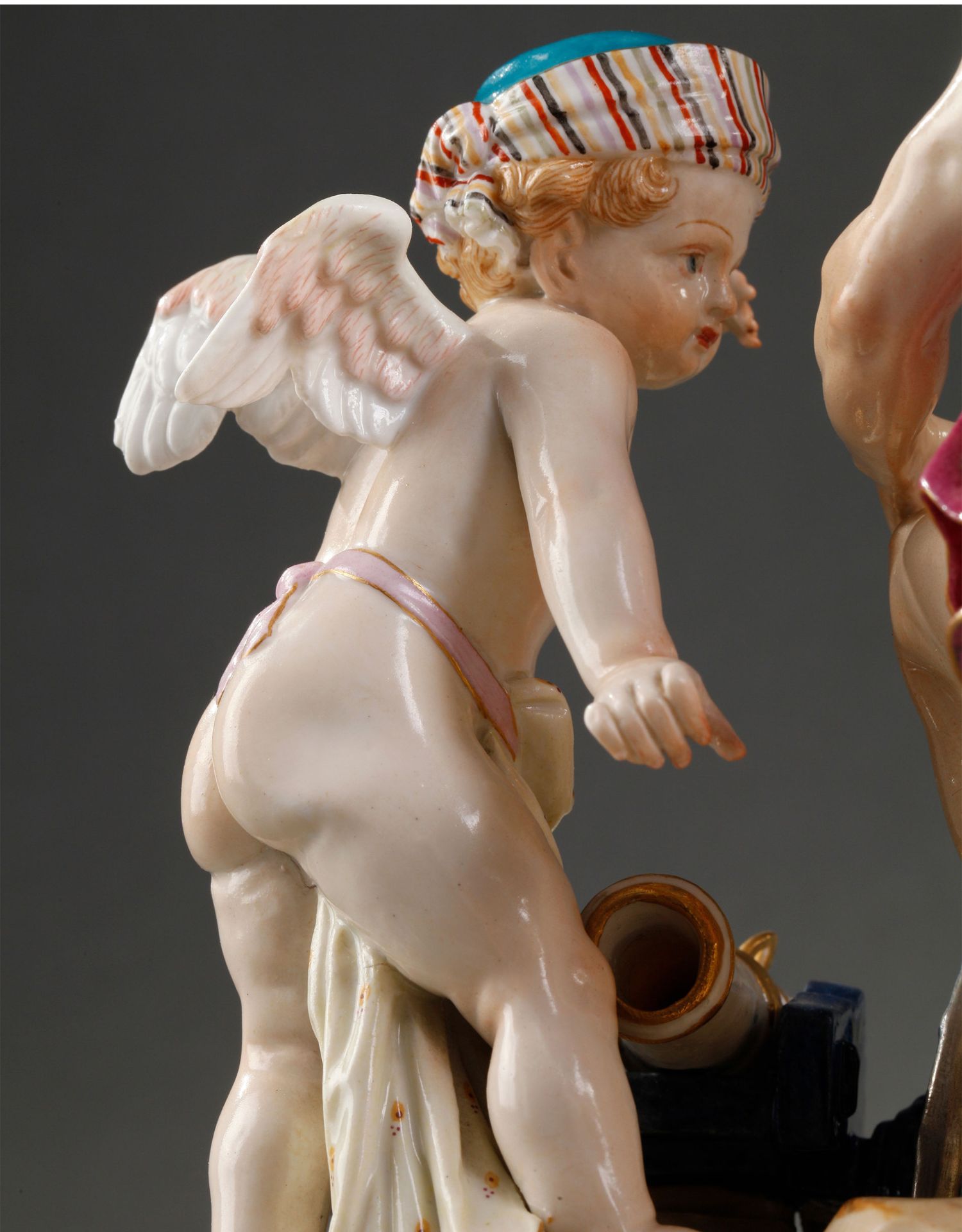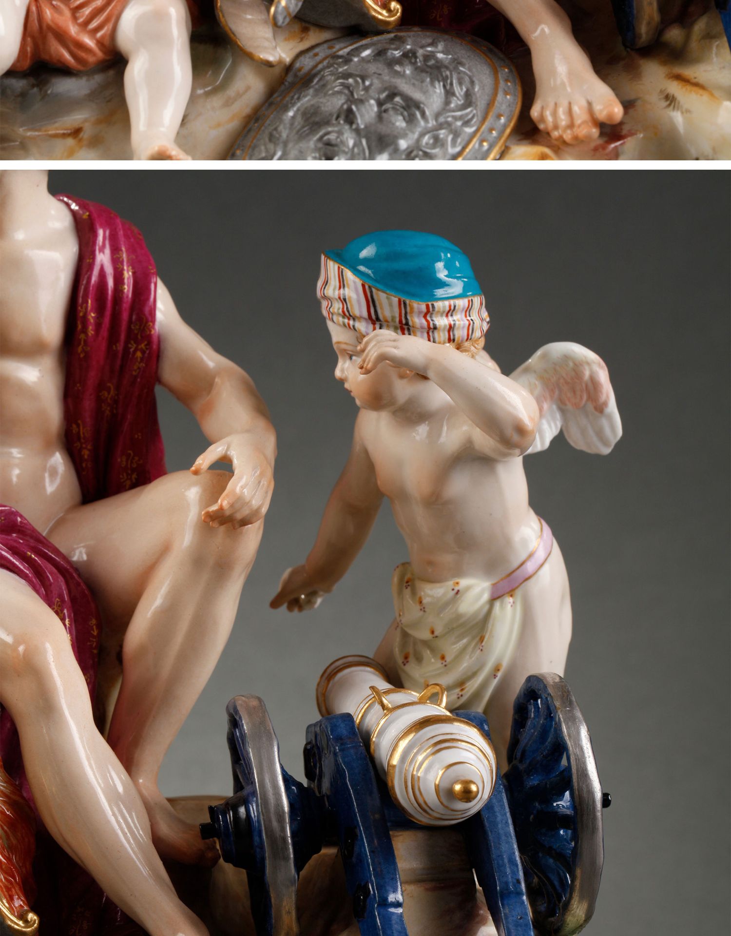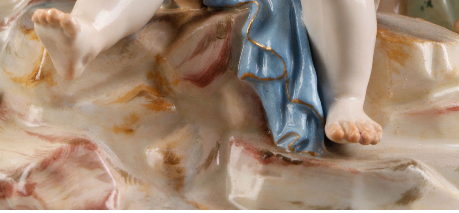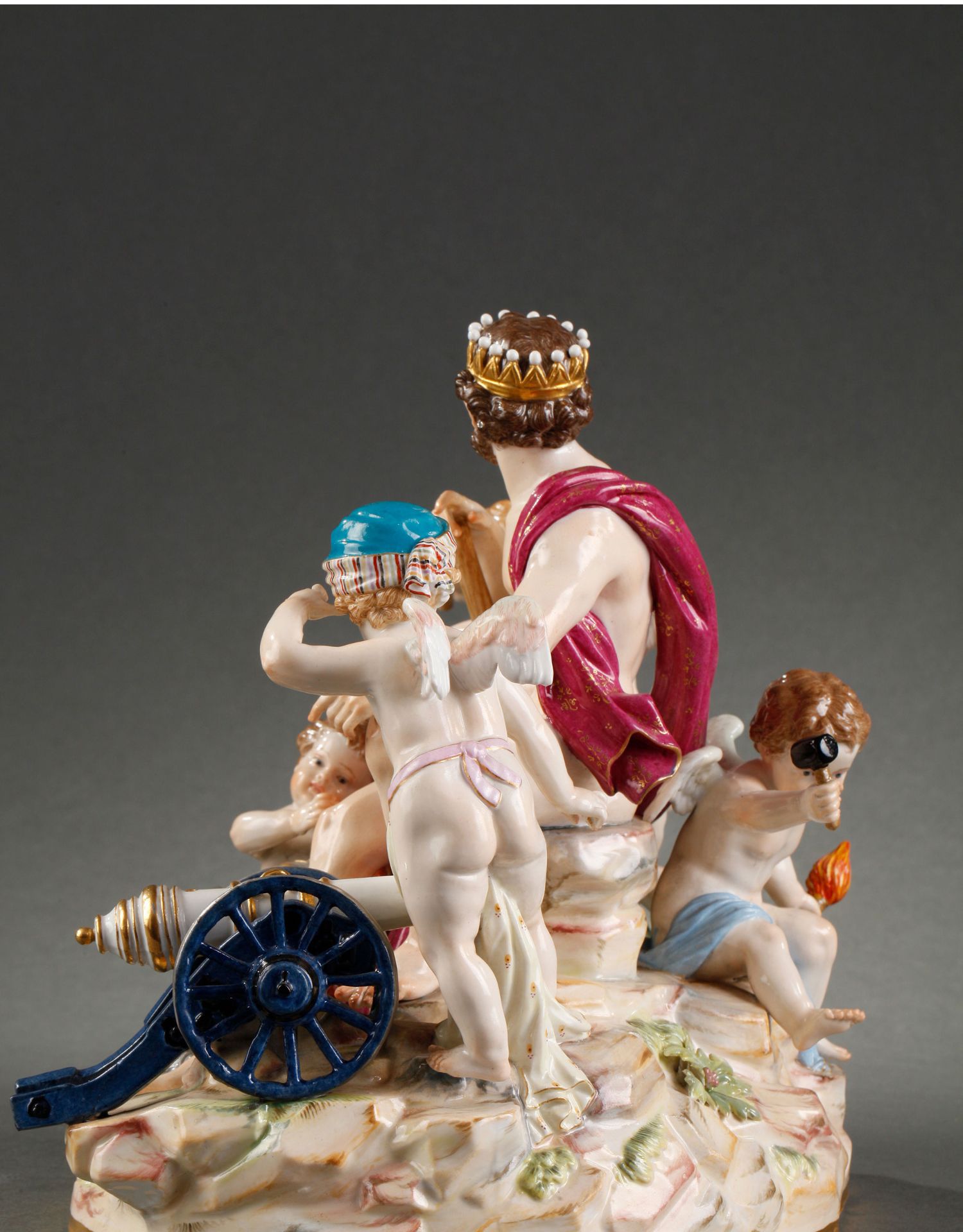 独角鹿西洋古董摆件德国梅森瓷窑洛可可风格天使与战神玛尔斯瓷偶