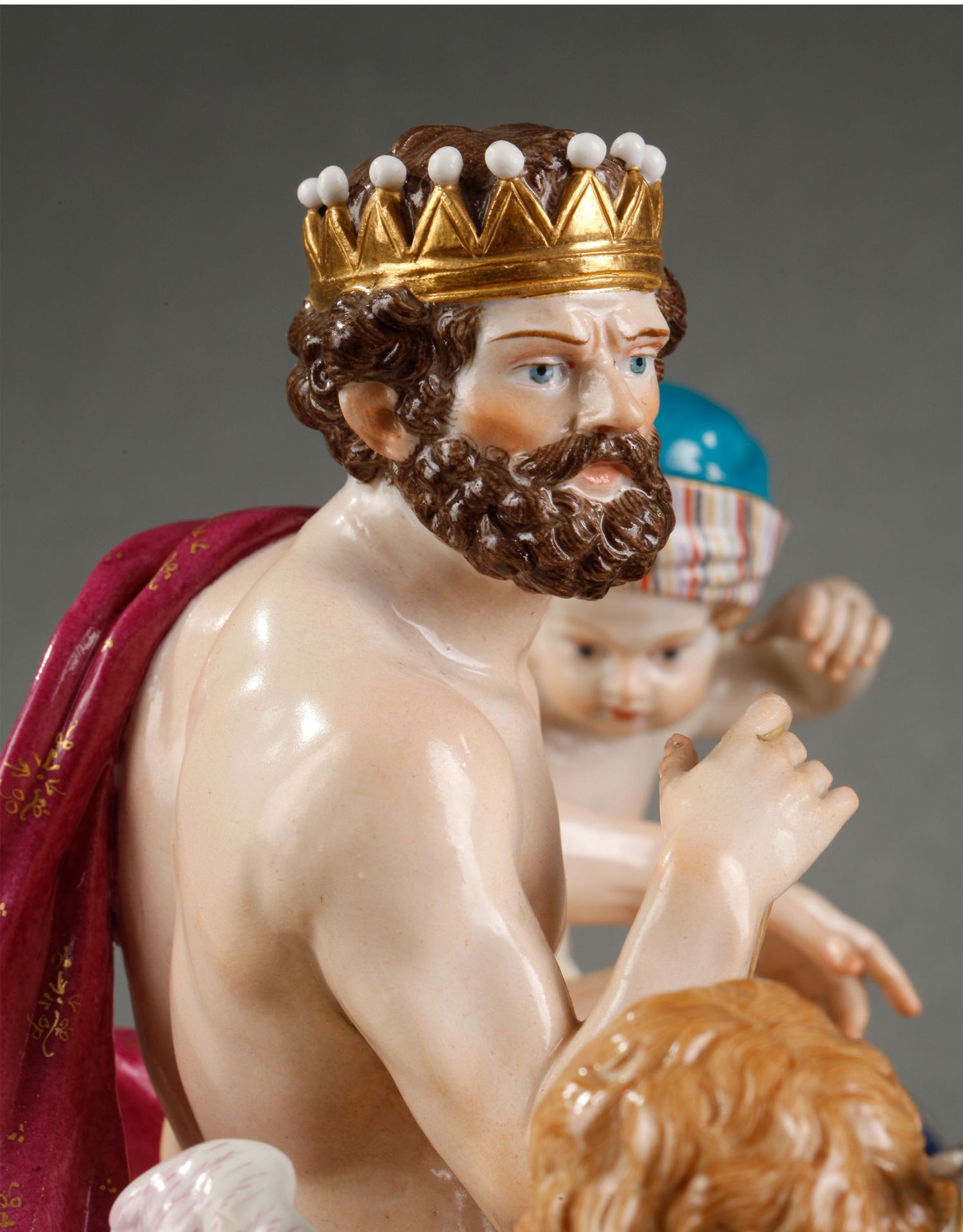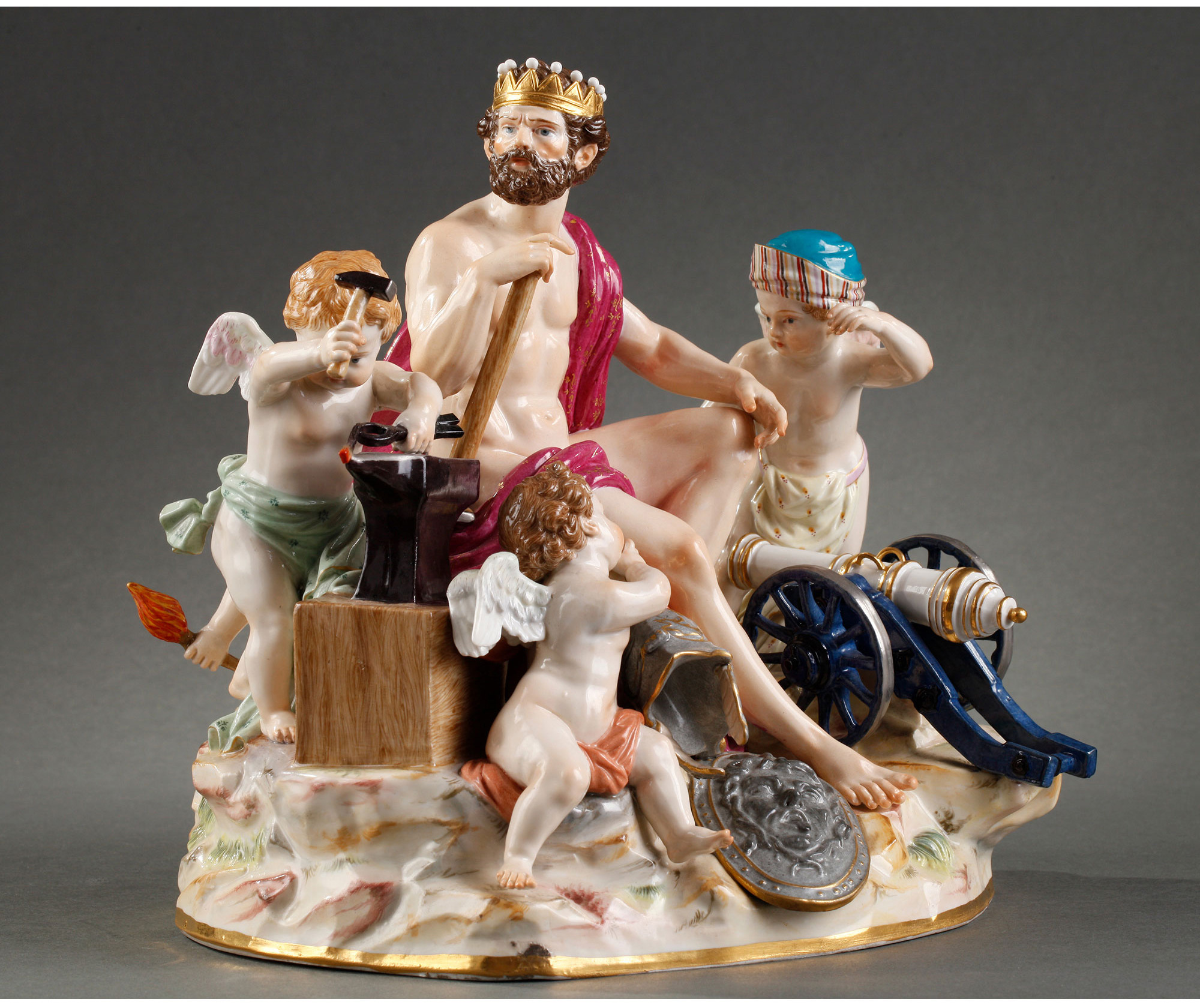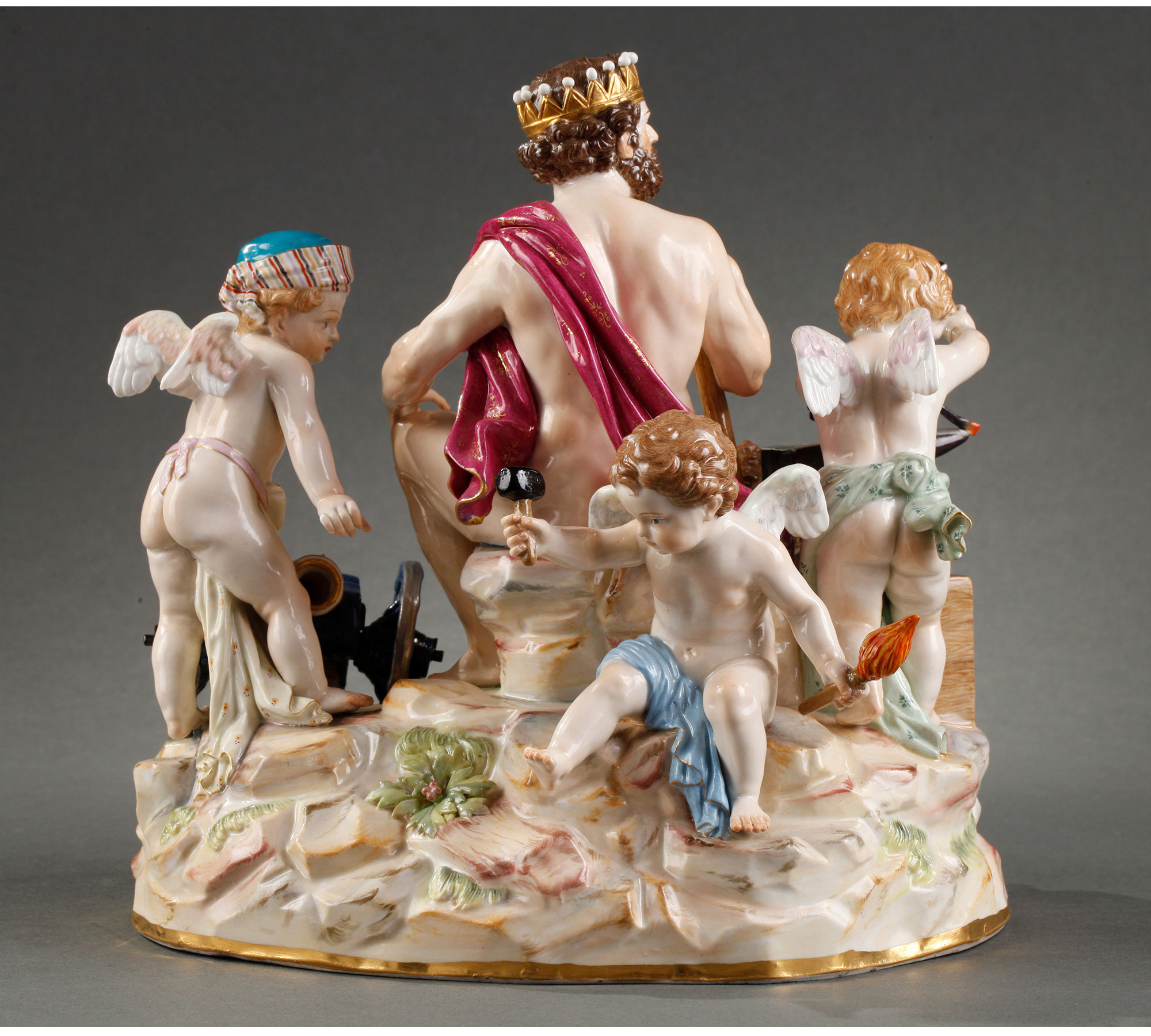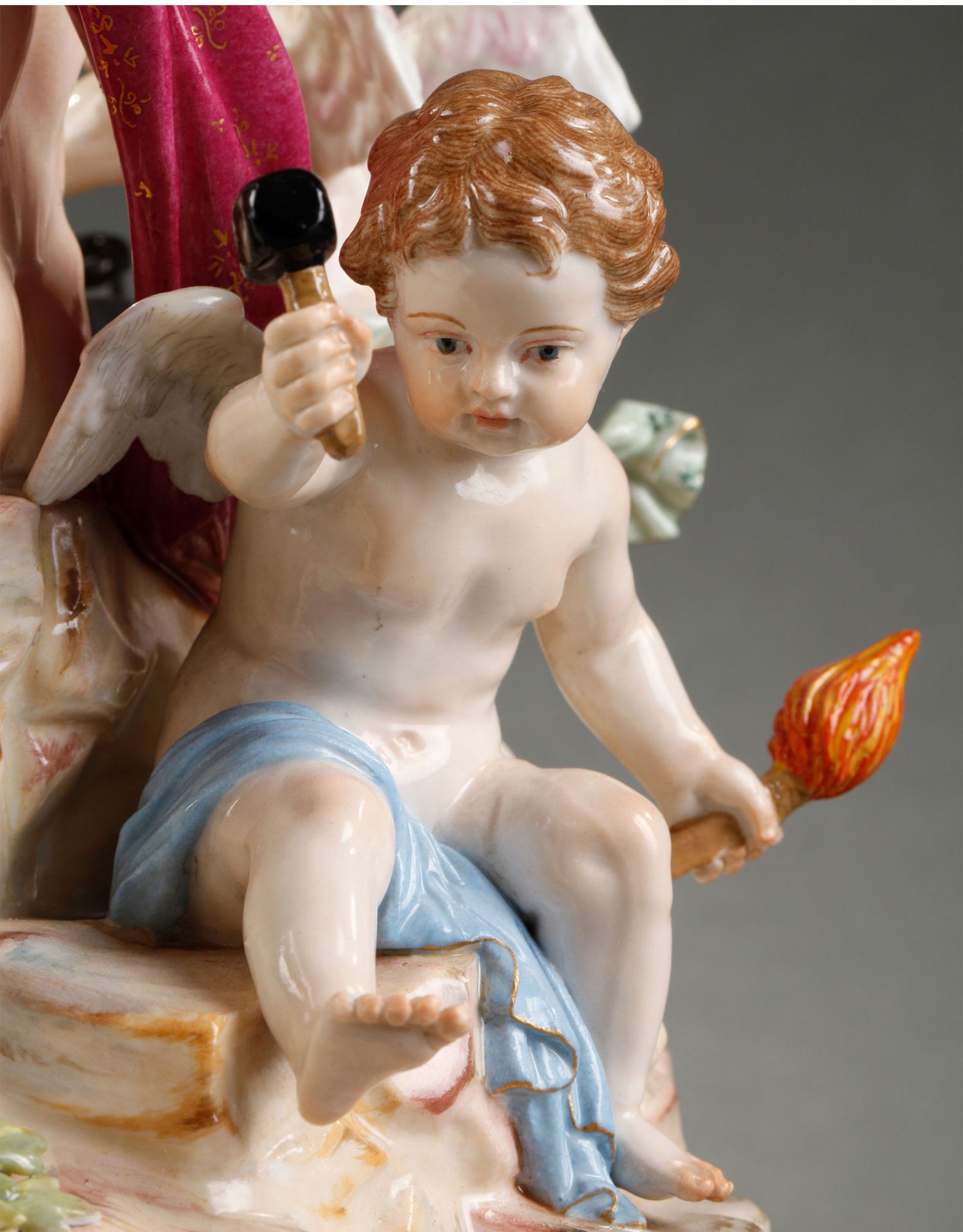 独角鹿西洋古董摆件德国梅森瓷窑洛可可风格天使与战神玛尔斯瓷偶