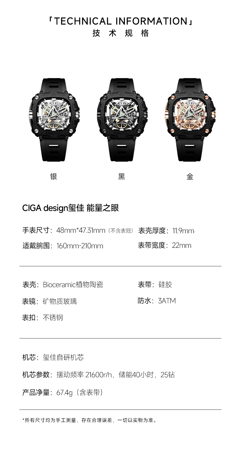 CIGA design玺佳机械表·X系列 能量之眼男士手表