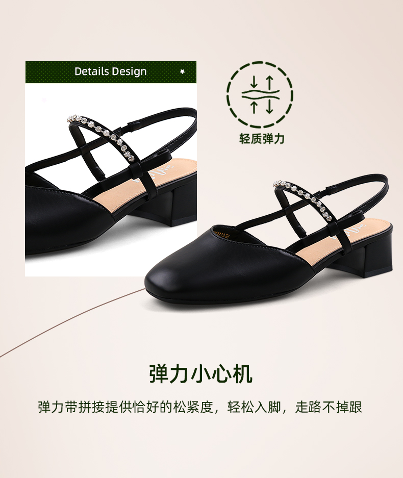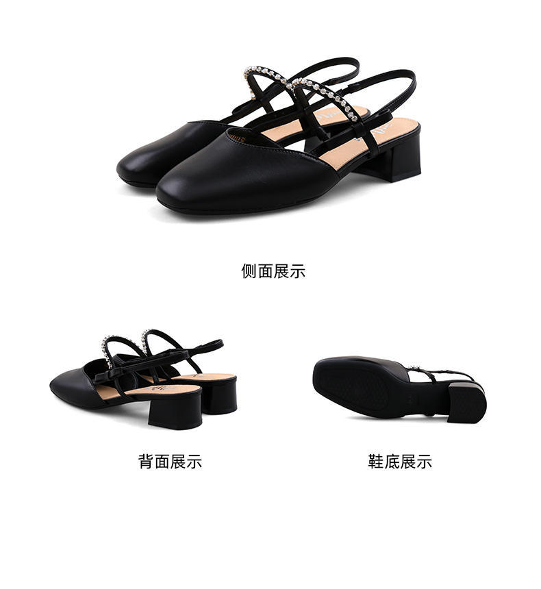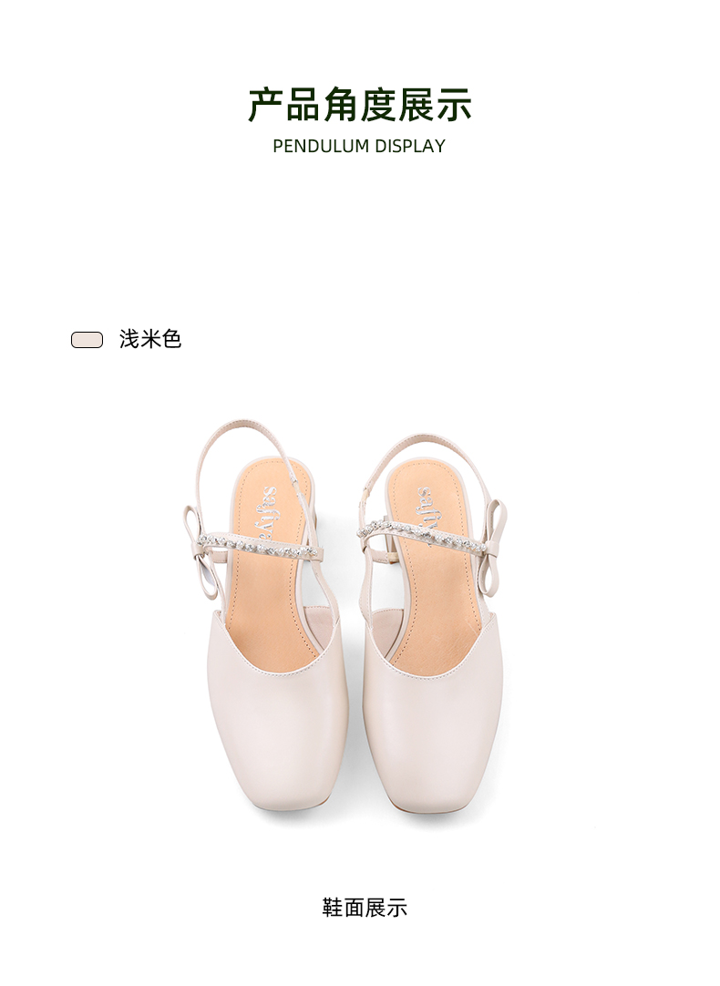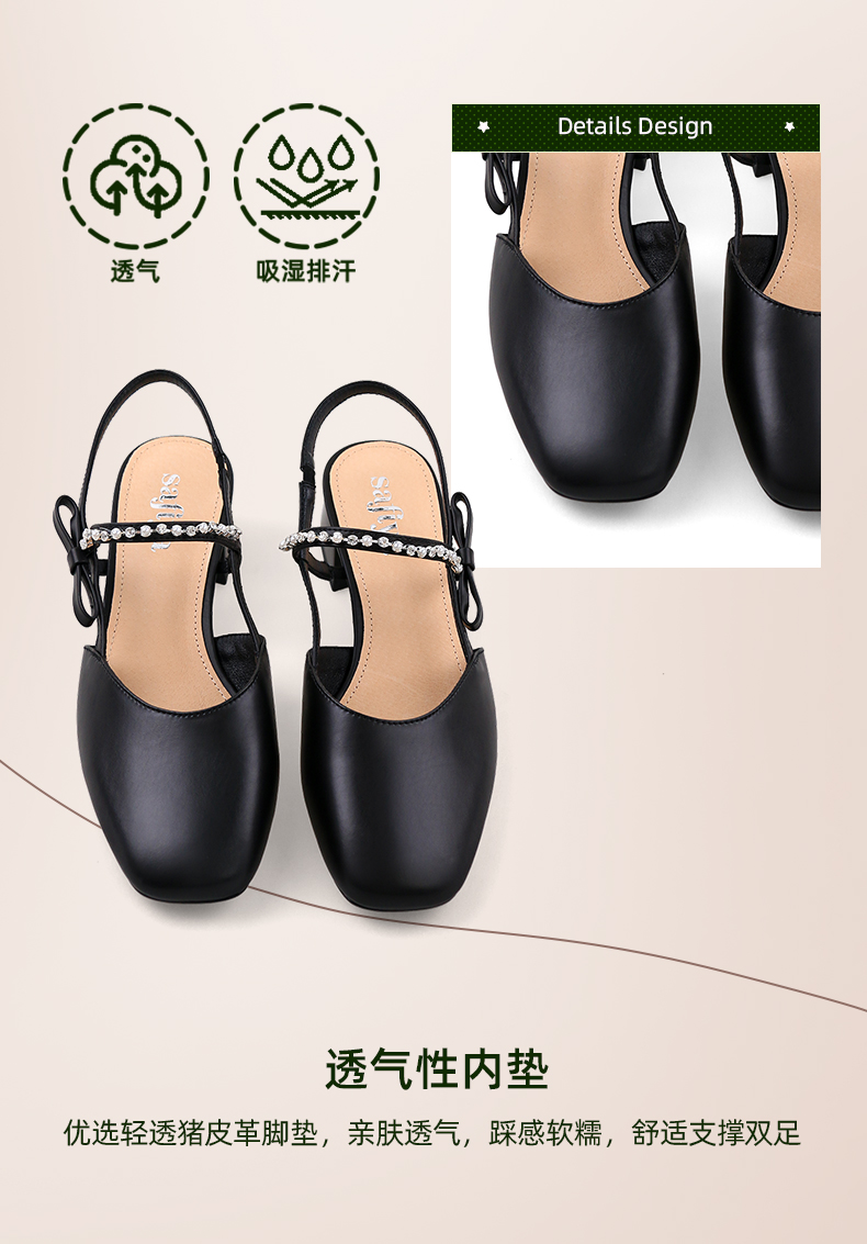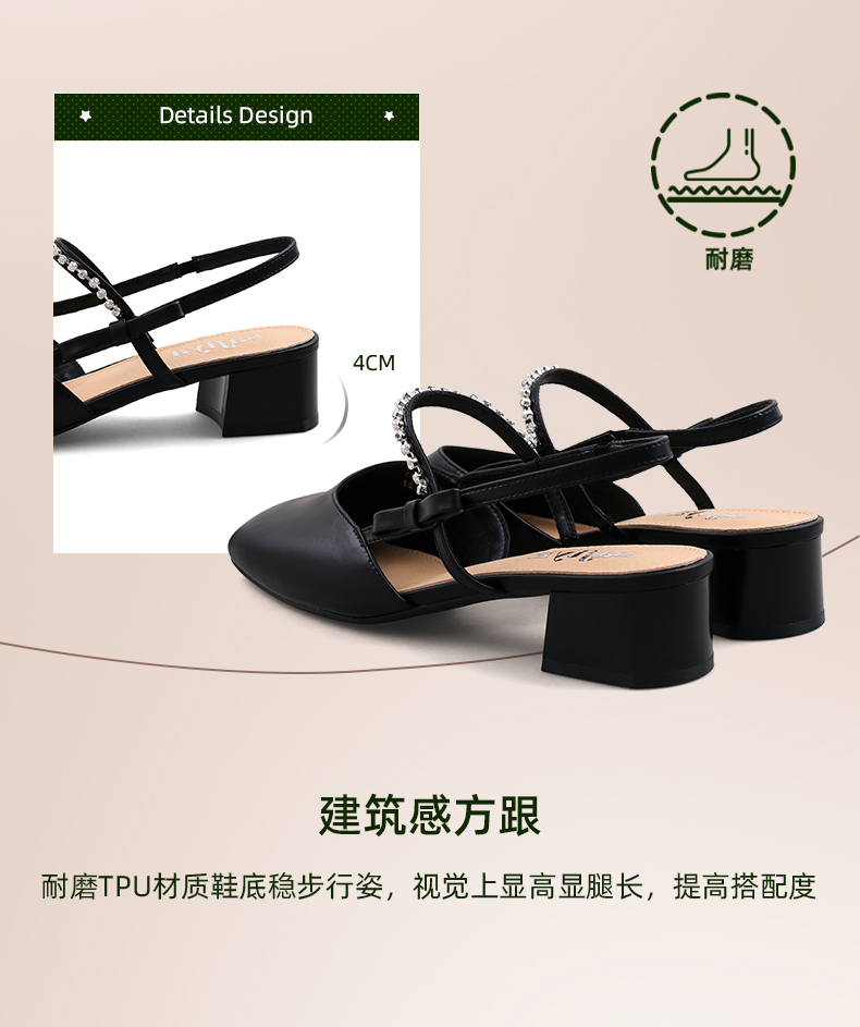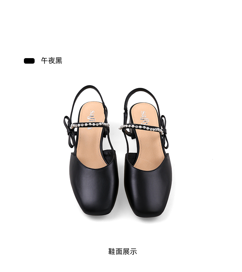 Safiya/索菲娅2024春 仙女风水钻链条后空粗跟浅口蝴蝶结单鞋 SF41111420