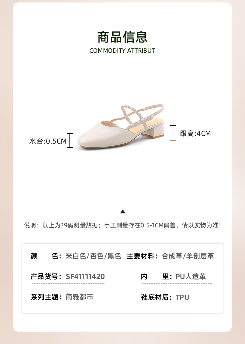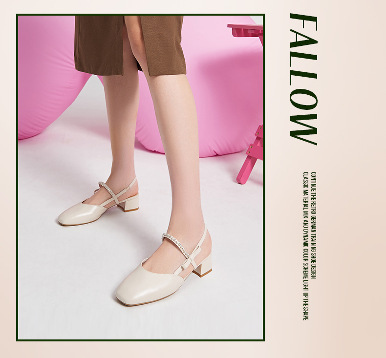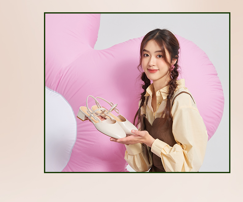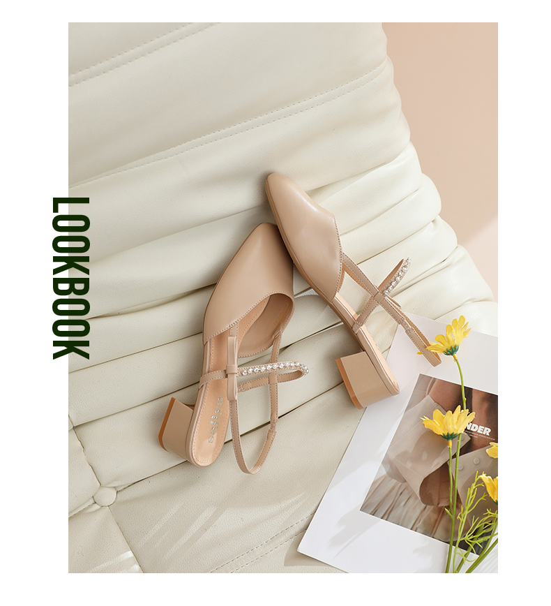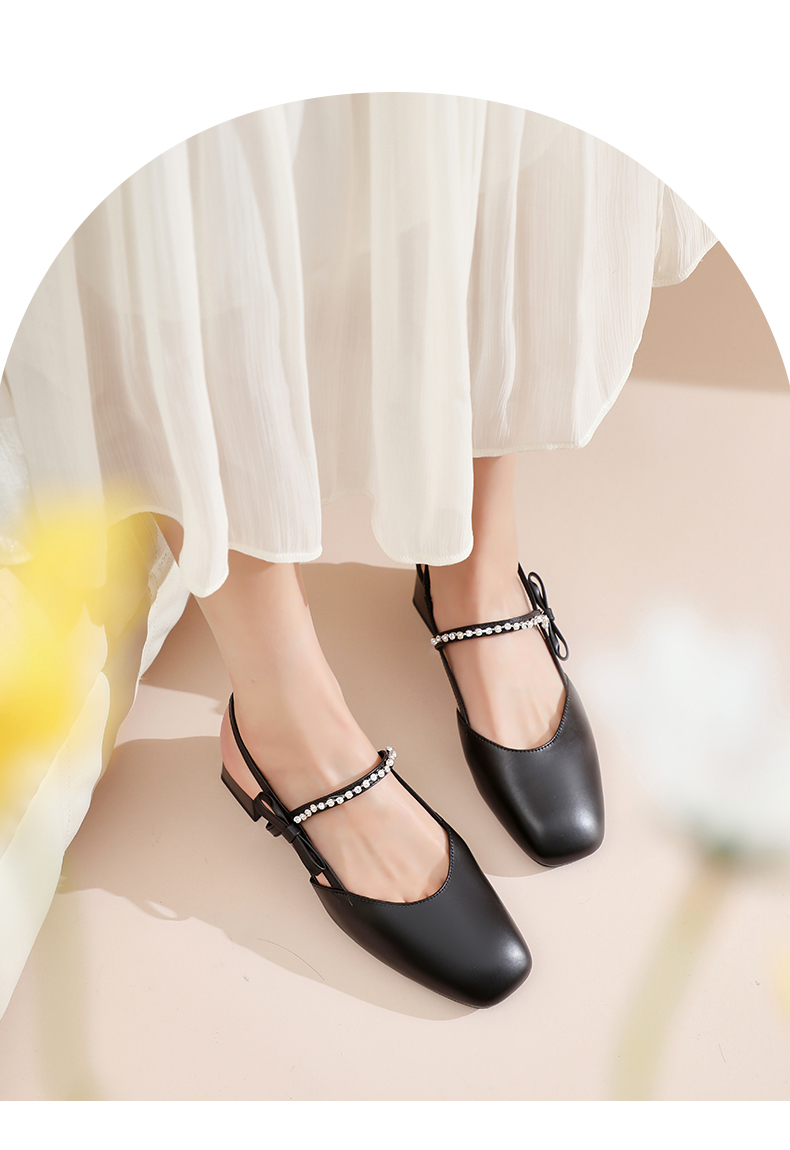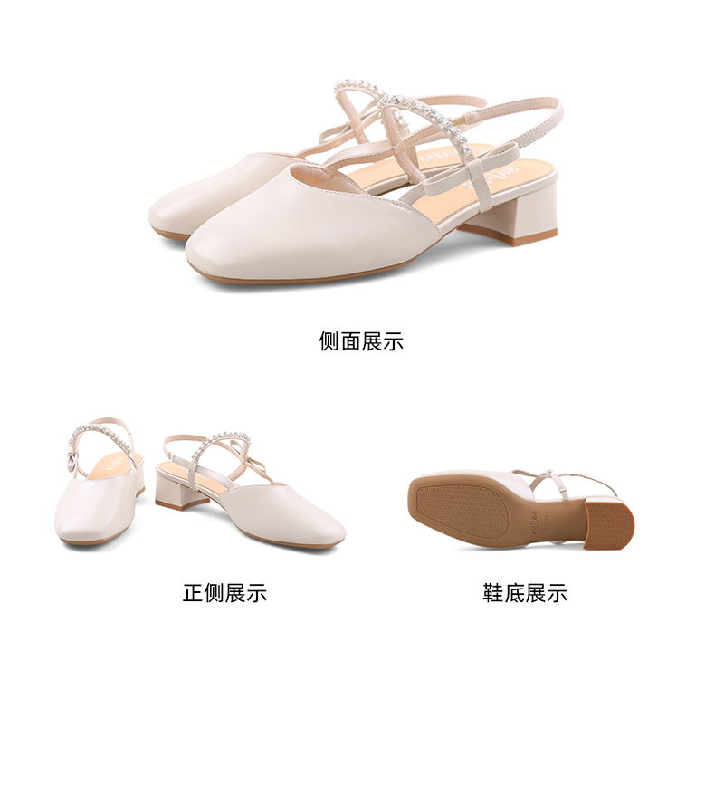 Safiya/索菲娅2024春 仙女风水钻链条后空粗跟浅口蝴蝶结单鞋 SF41111420
