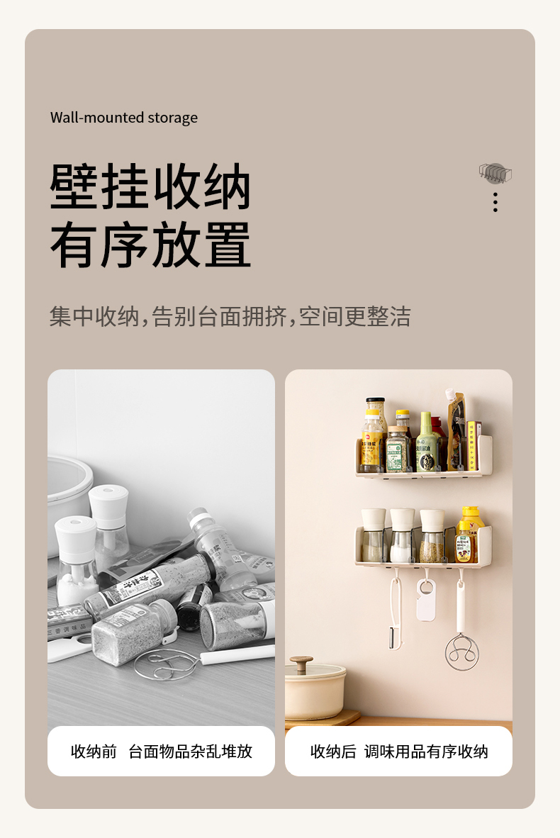 FaSoLa厨房调料置物架免打孔可调节调料好拿取调味瓶罐多功能调料收纳盒