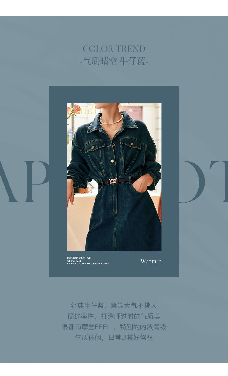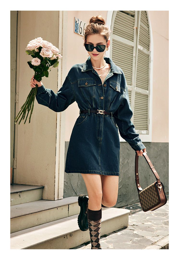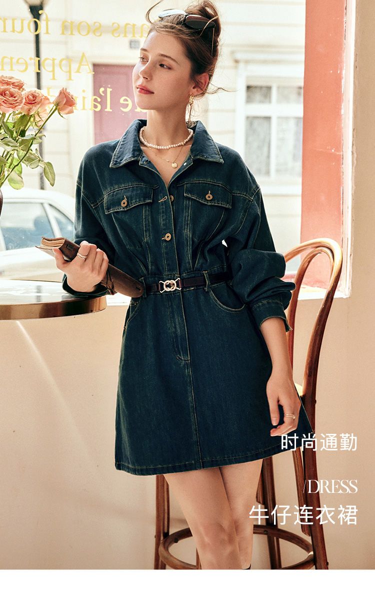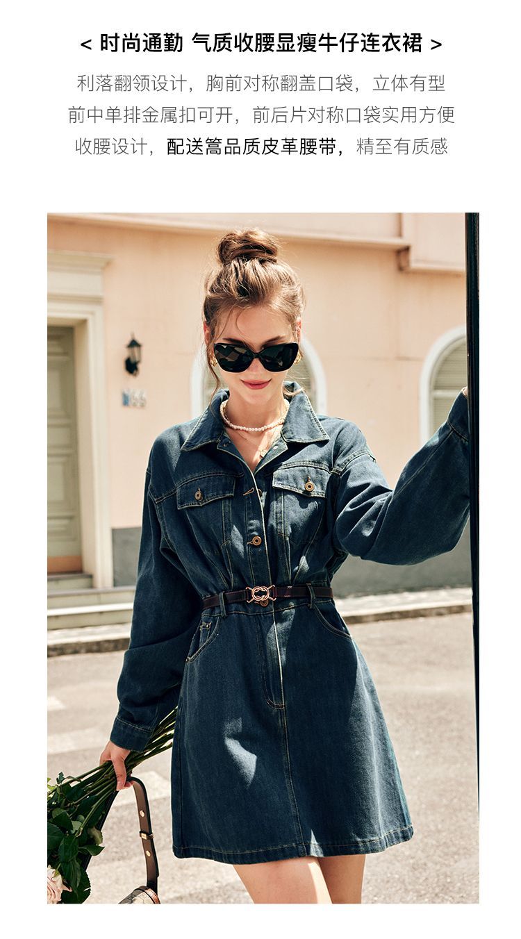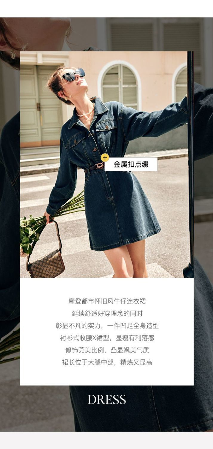 OLrain欧芮儿法式牛仔连衣裙女秋季2022年新款收腰复古港风裙子