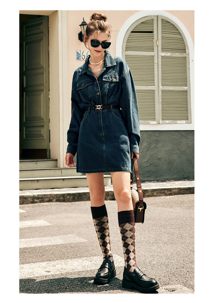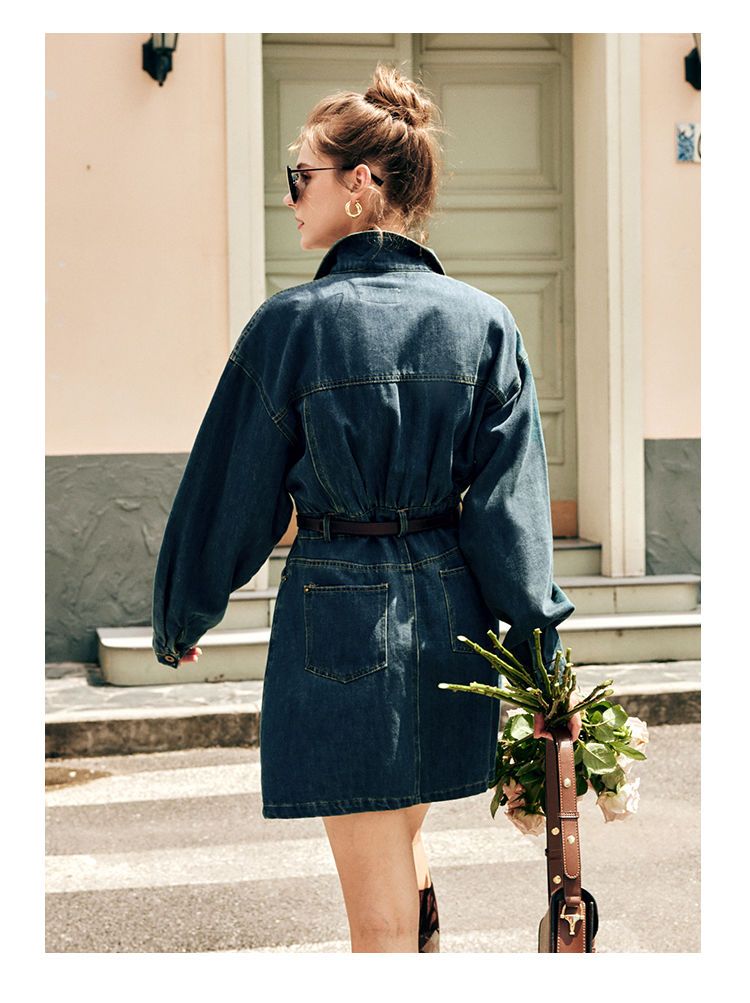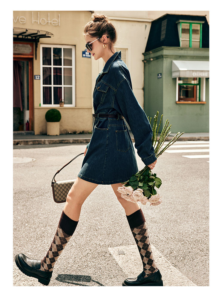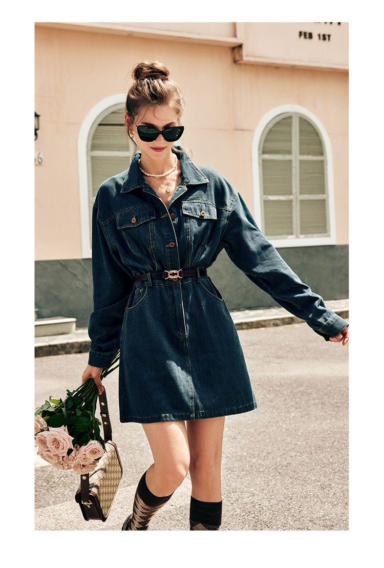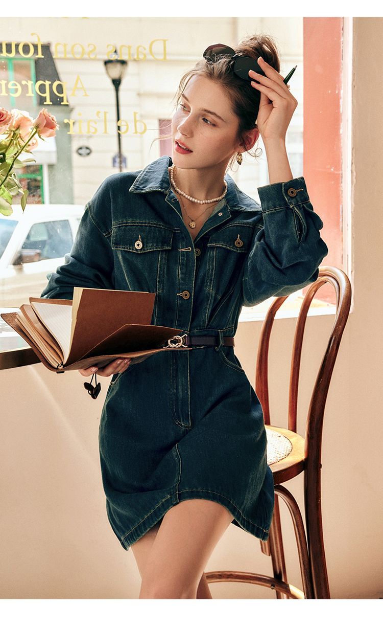 OLrain欧芮儿法式牛仔连衣裙女秋季2022年新款收腰复古港风裙子