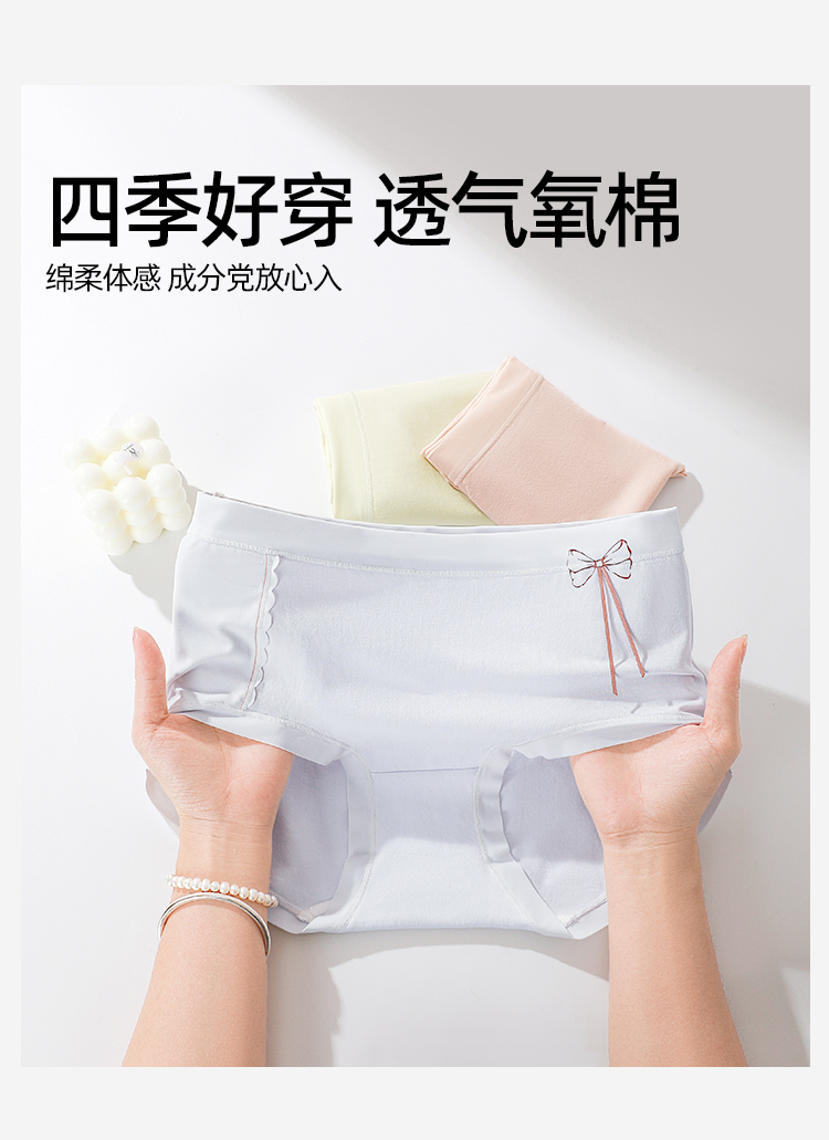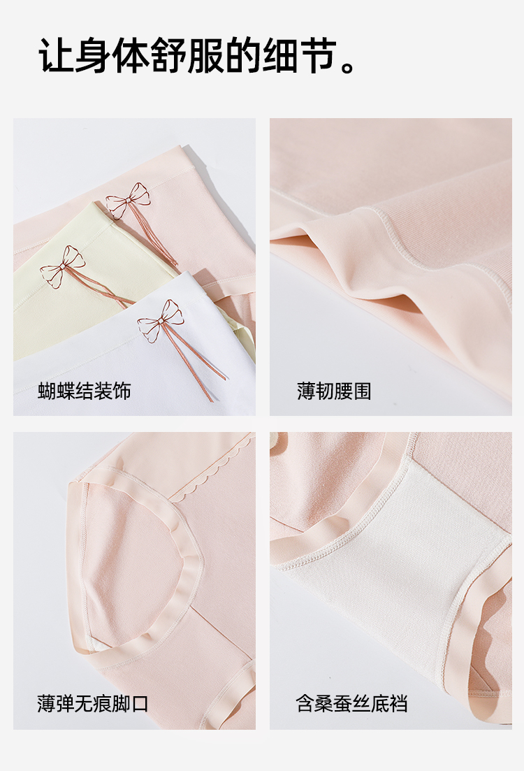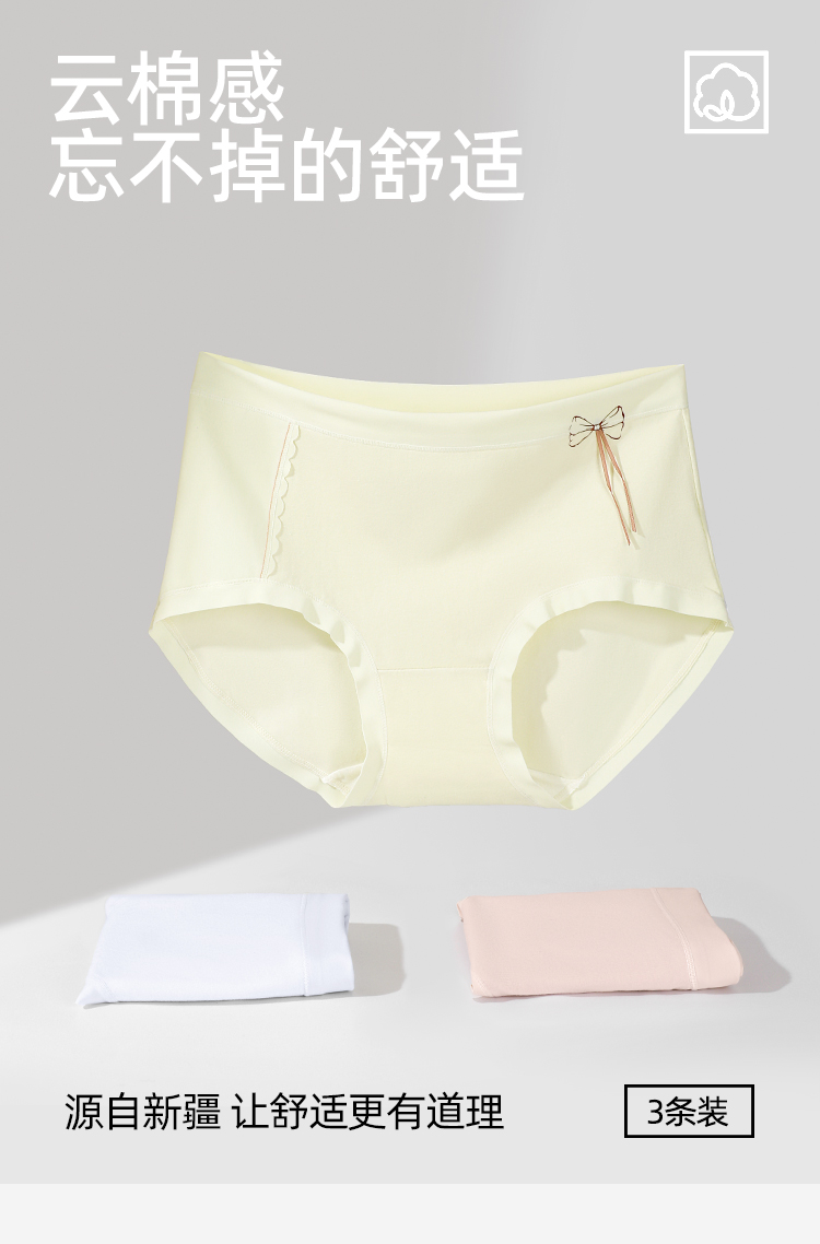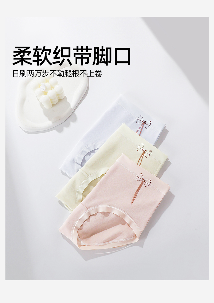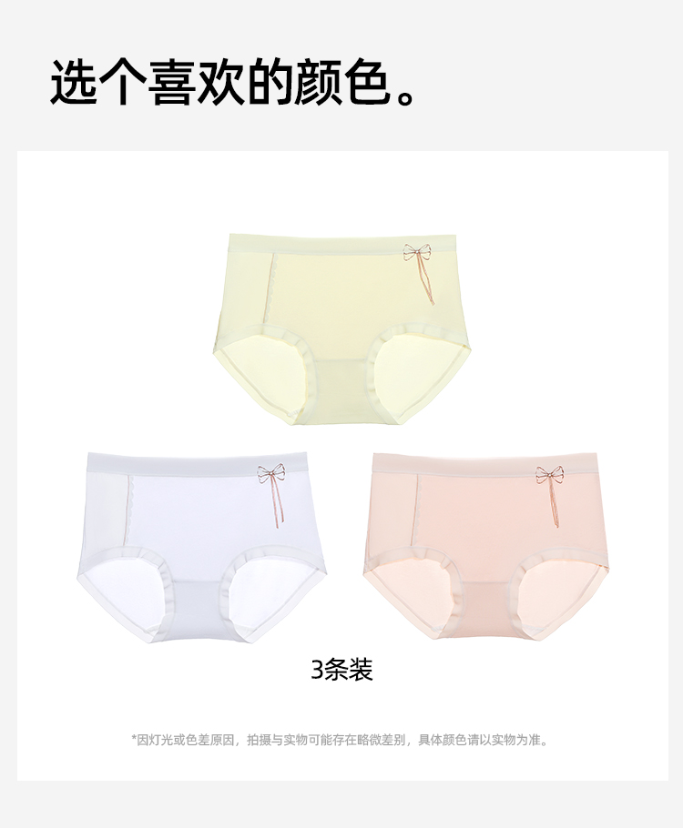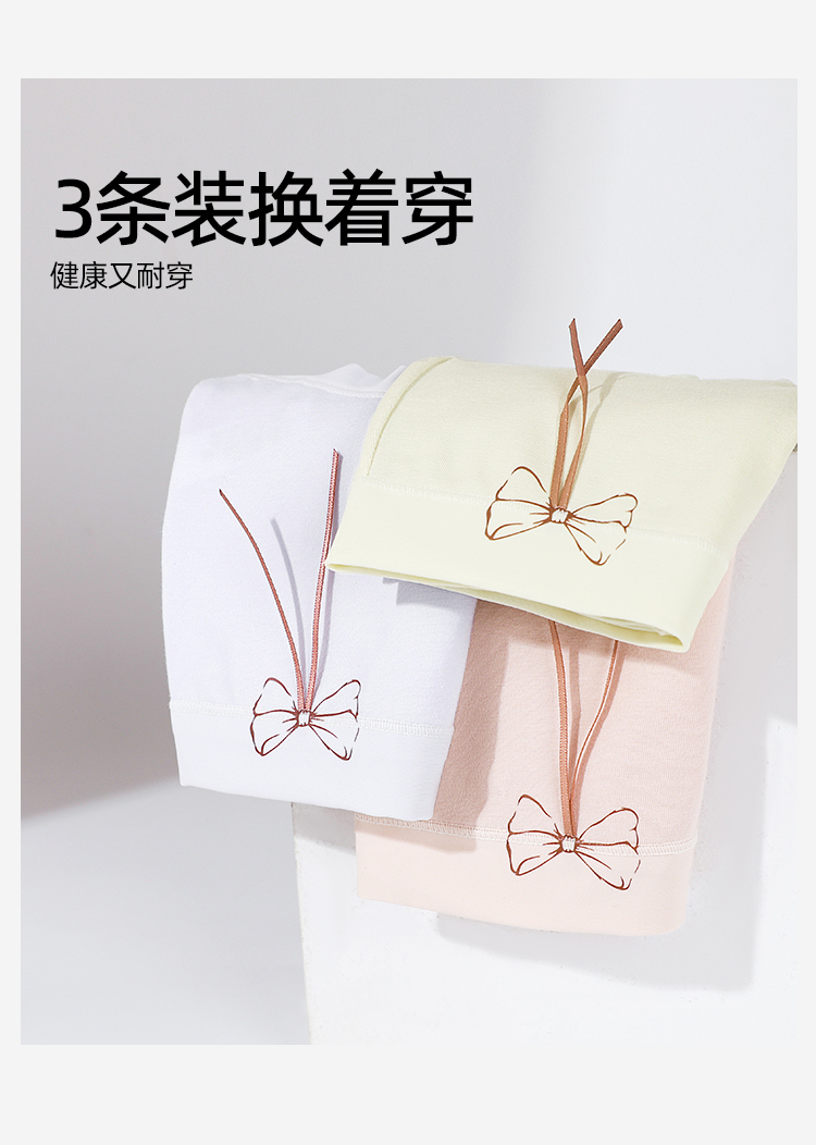 【3条装】熳洁儿 纯棉内裤女士中腰包臀含桑蚕丝甜美蝴蝶结25262126