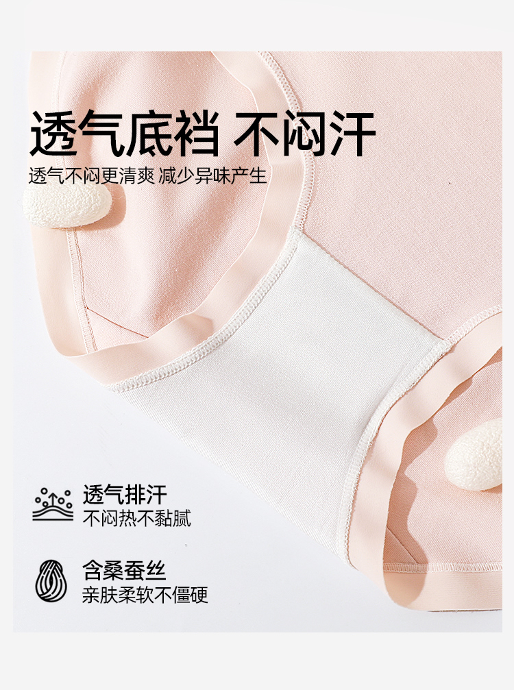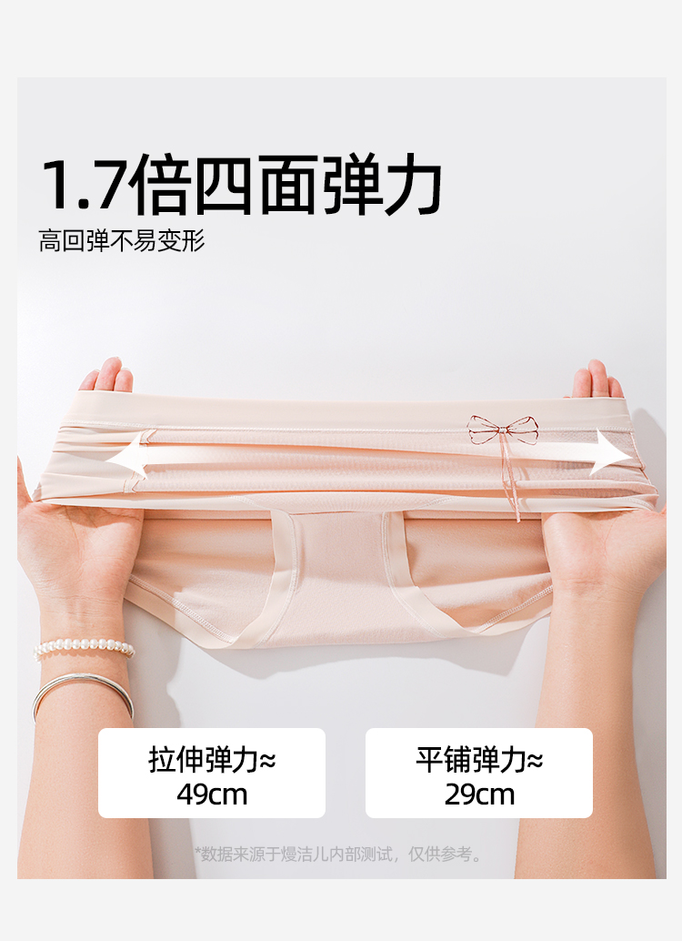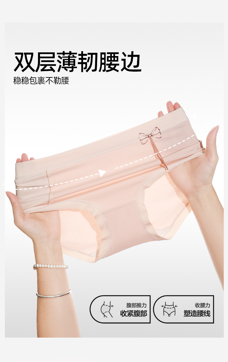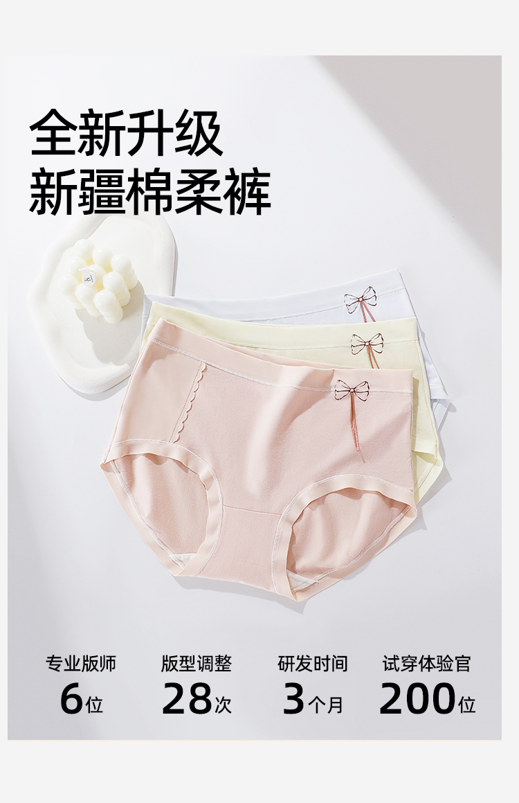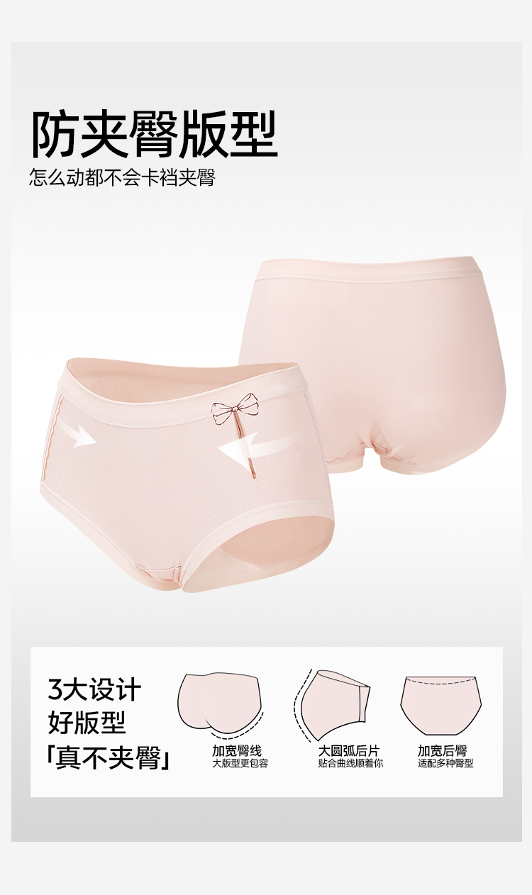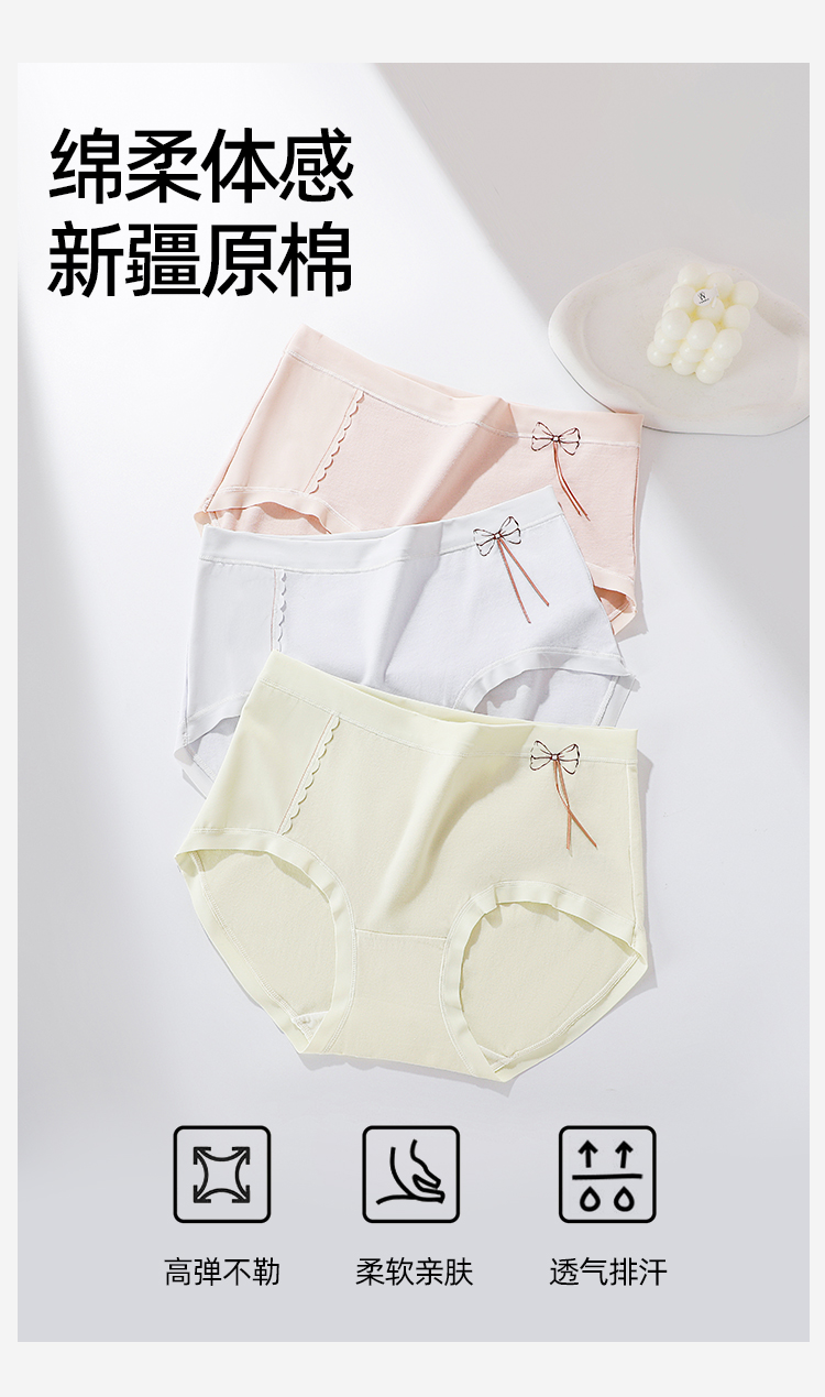【3条装】熳洁儿 纯棉内裤女士中腰包臀含桑蚕丝甜美蝴蝶结25262126