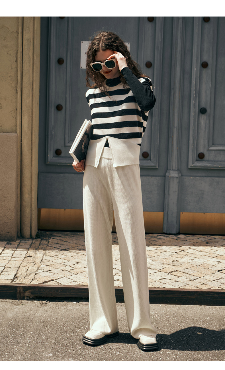 OLrain欧芮儿黑白条纹毛衣背心马甲女初秋2023新款宽松无袖套头衫