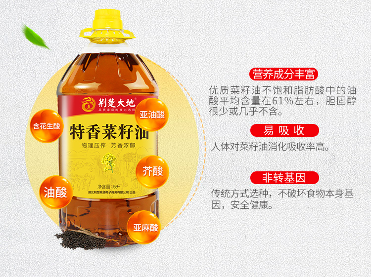 特香菜籽油荆楚大地5L/桶