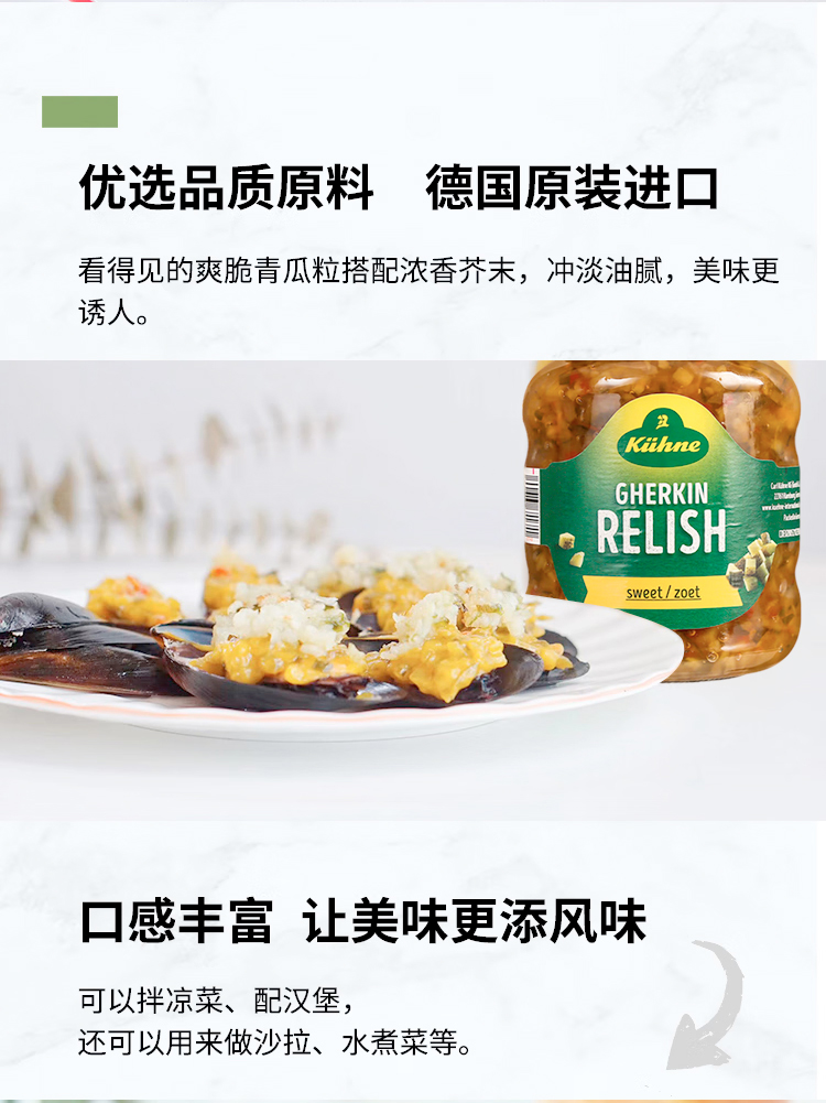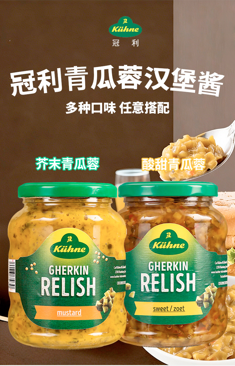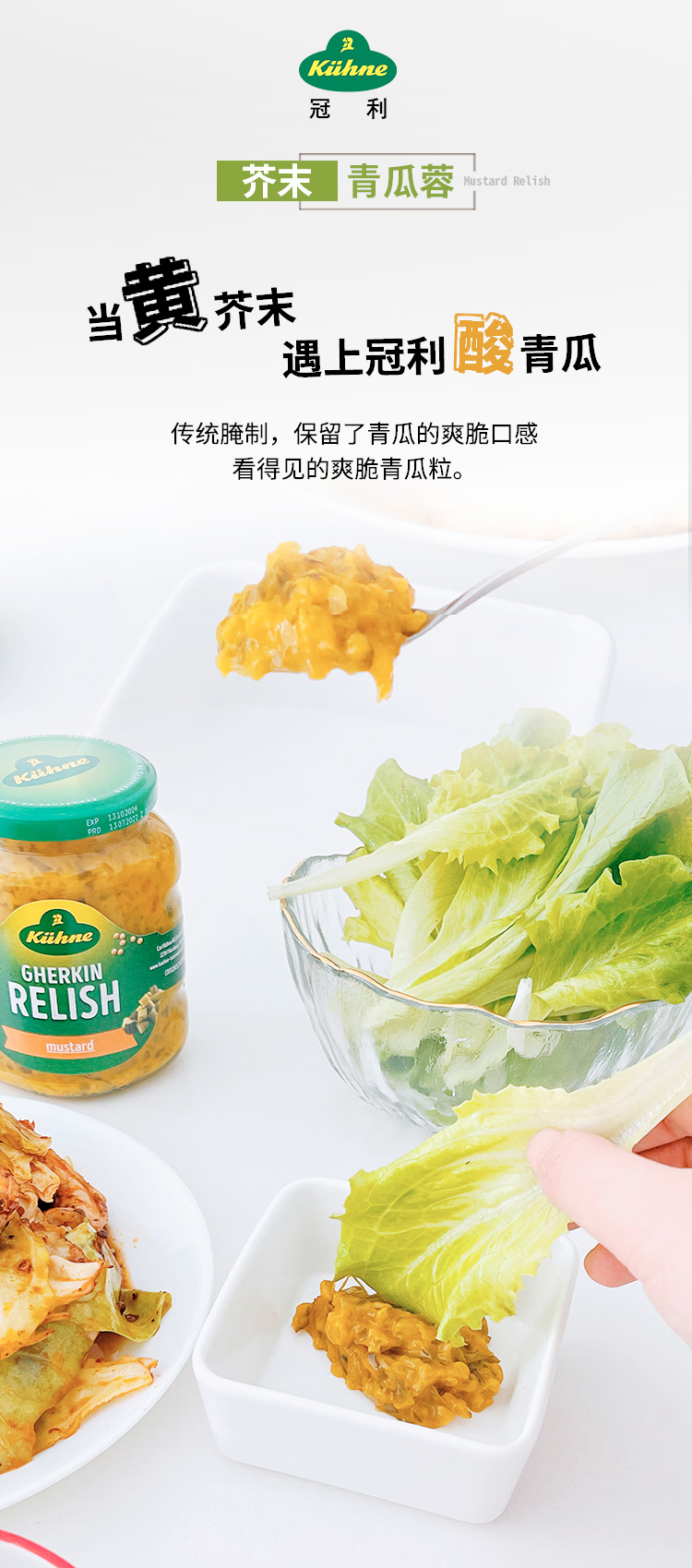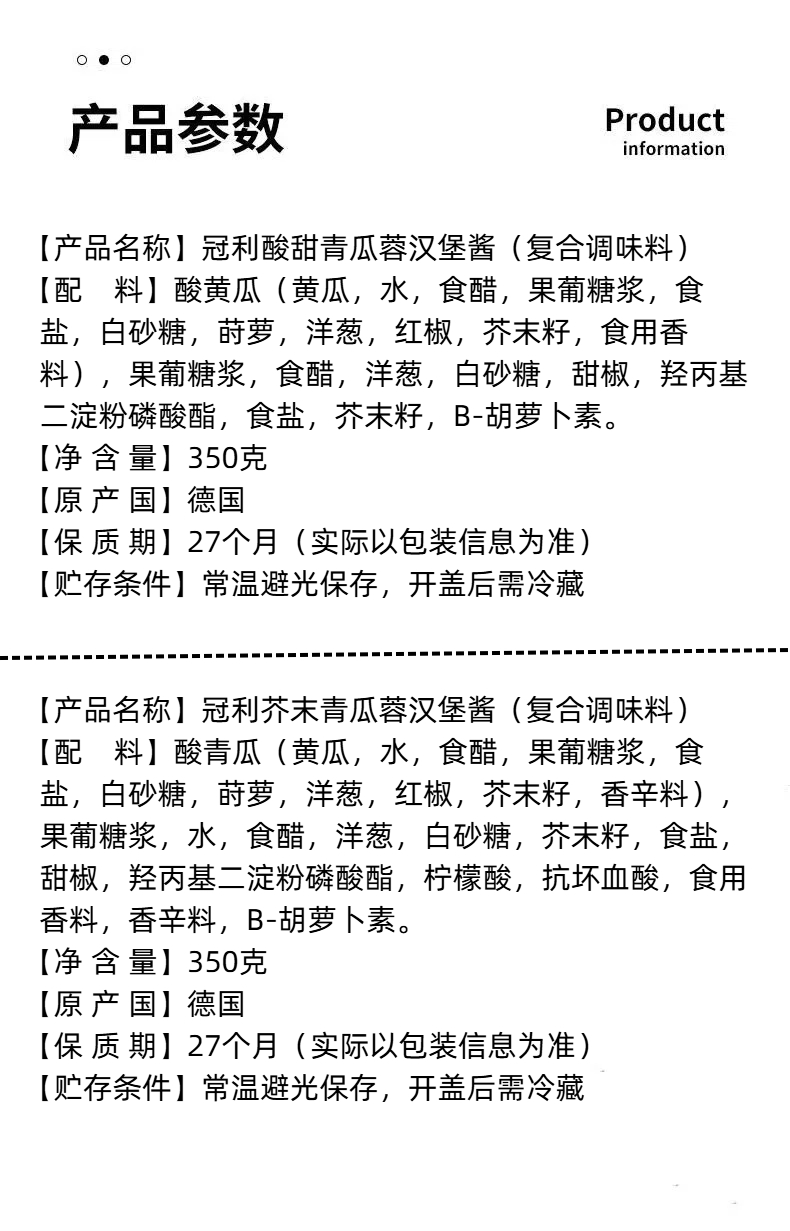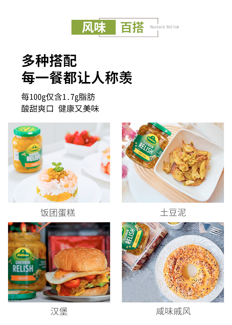 德国进口冠利酸甜I 芥末青瓜蓉汉堡酱350g/瓶 复合调味料