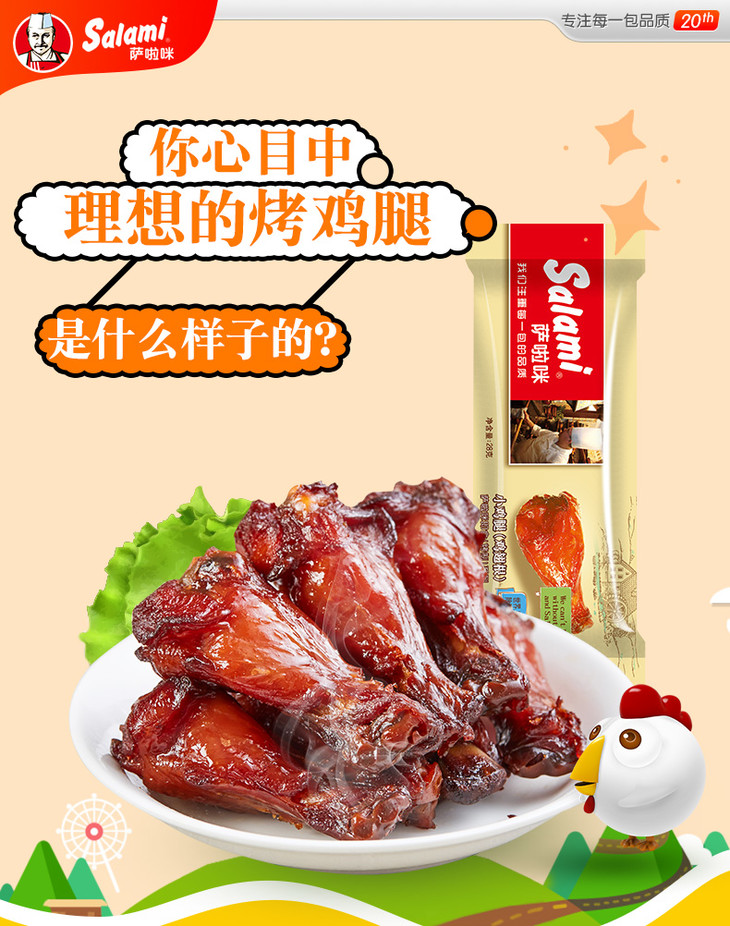 萨啦咪 香辣小鸡腿烤制鸡根翅鸡肉零食温州特产6包共168g肉食即食