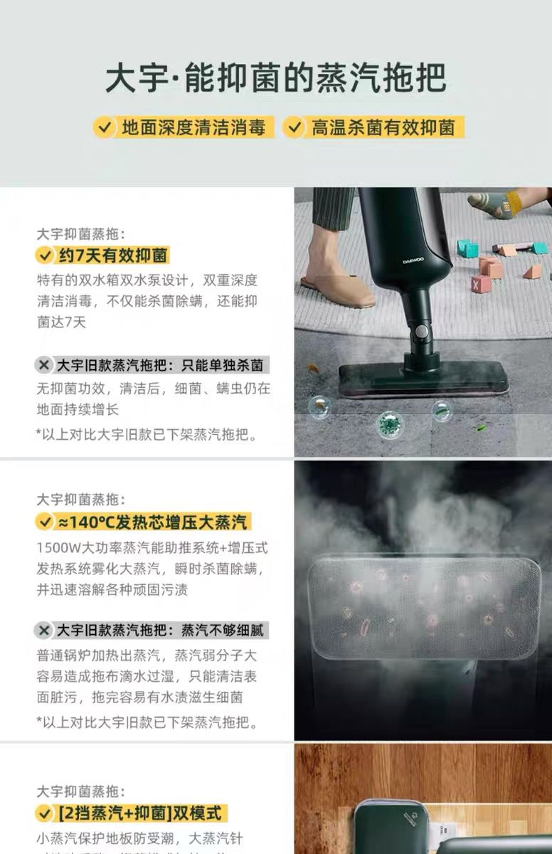 大宇蒸汽拖把高温杀菌除螨多功能家用电动擦地一拖净