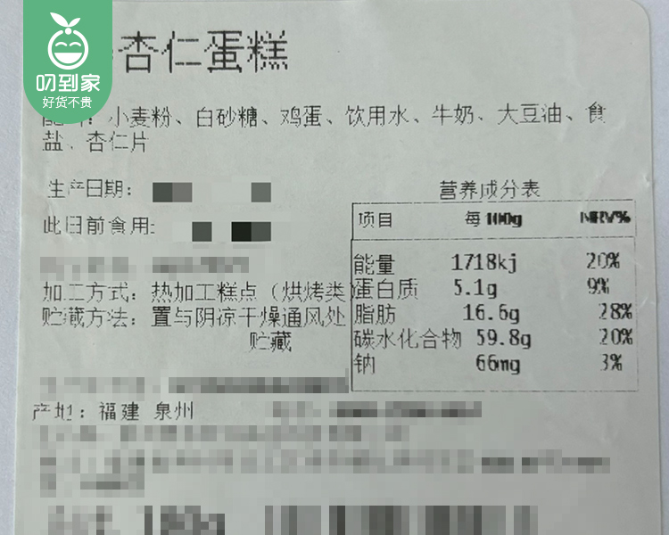 泉珍思饼杏仁蛋糕(180g/盒)生产日期:4月7日 保质期:3天