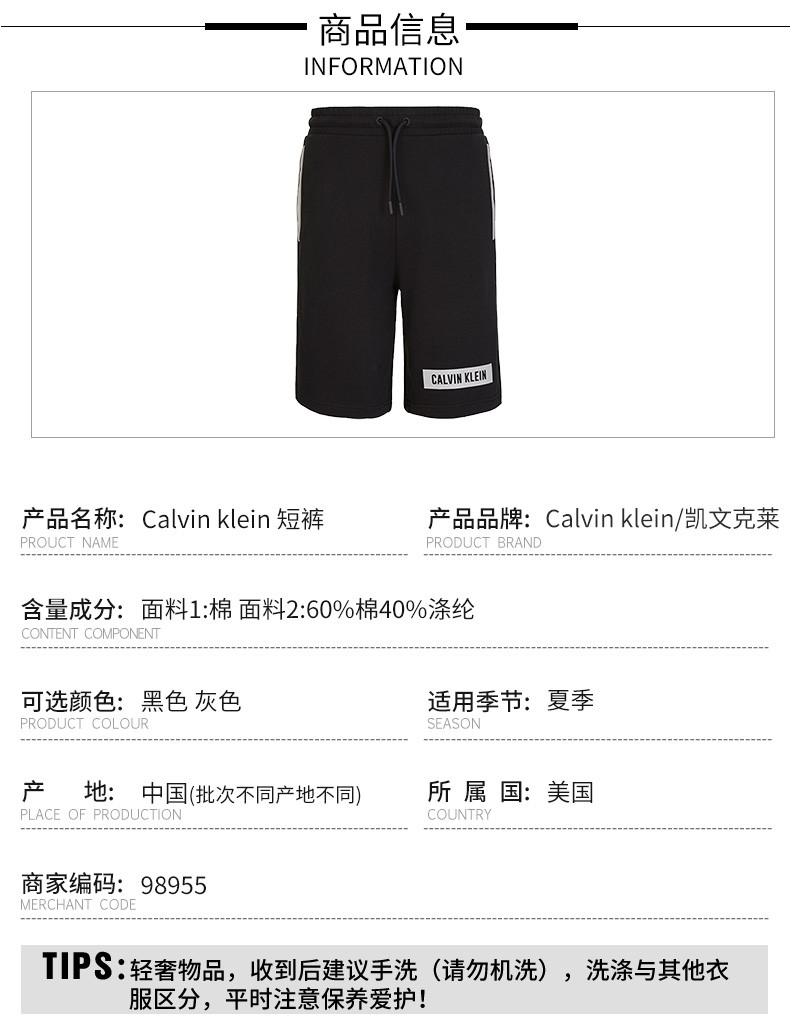 凯文克莱(Calvin Klein)CK男装 男士时尚简约休闲短裤98955