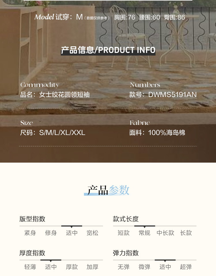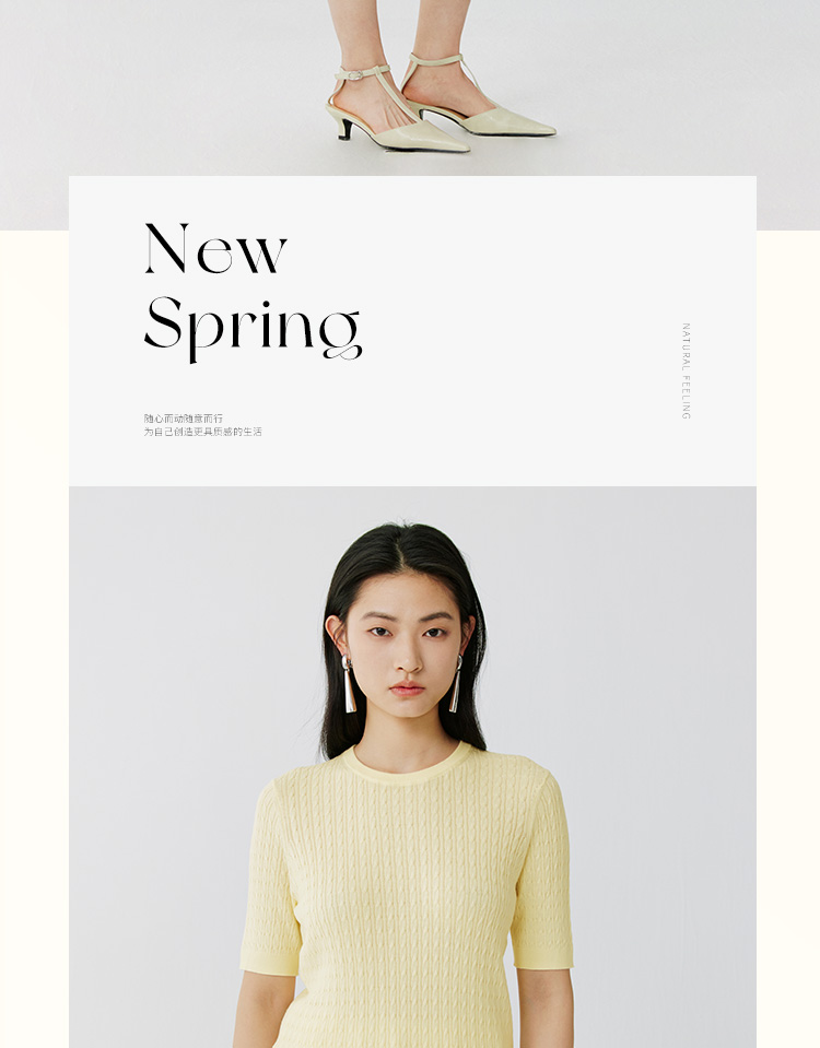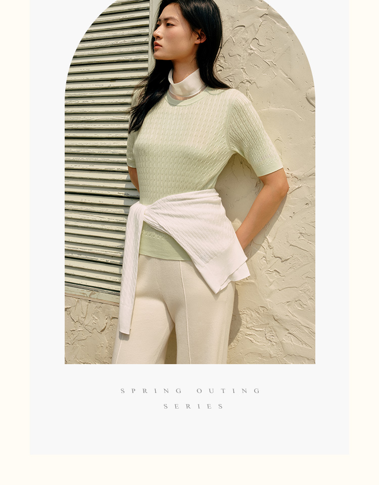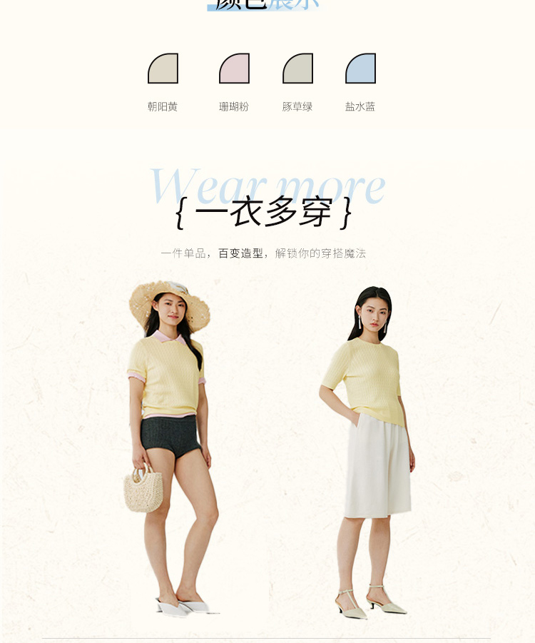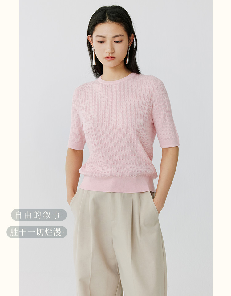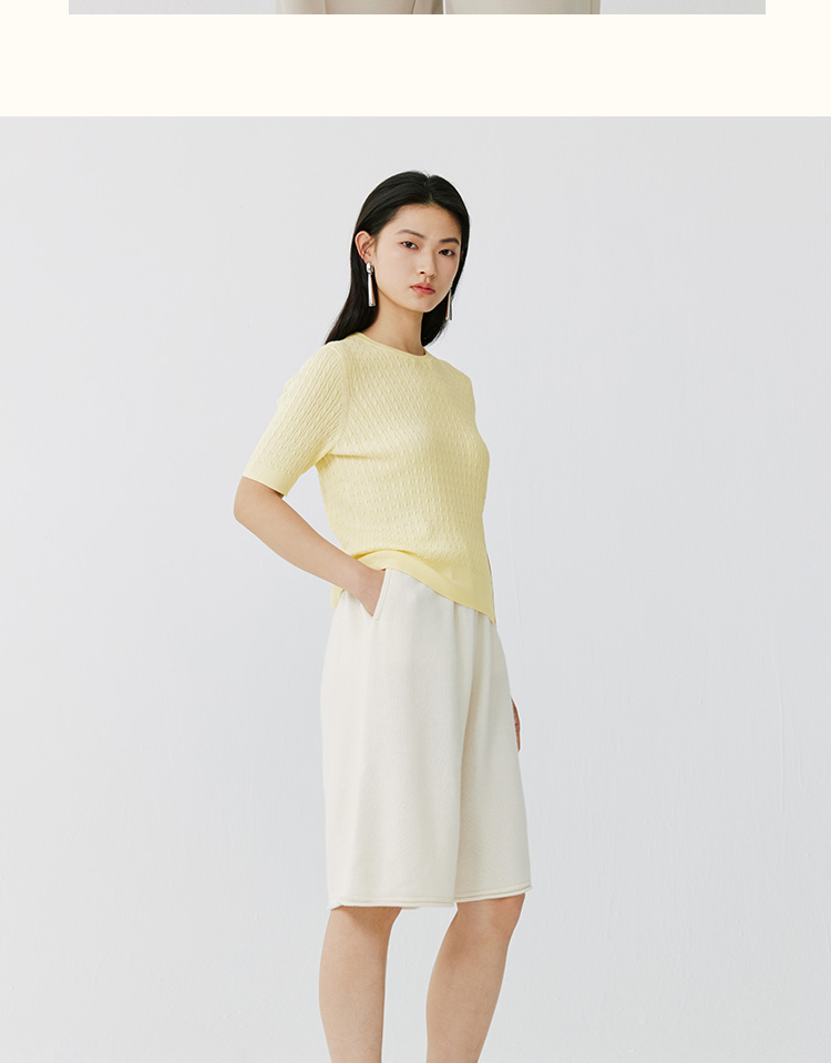东黎 • 岛屿假日—柠檬入海 海岛棉女士春夏圆领绞花短袖 5191