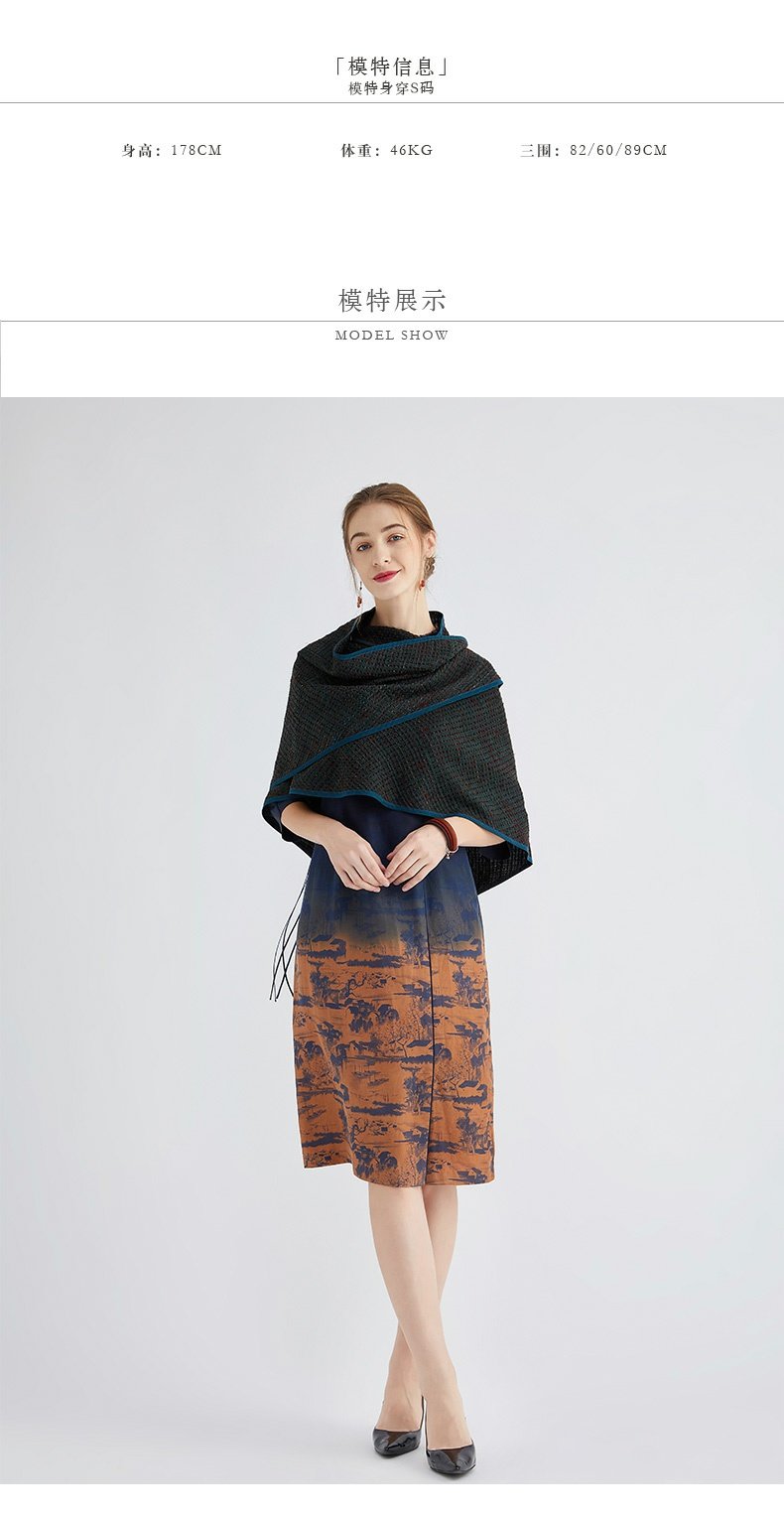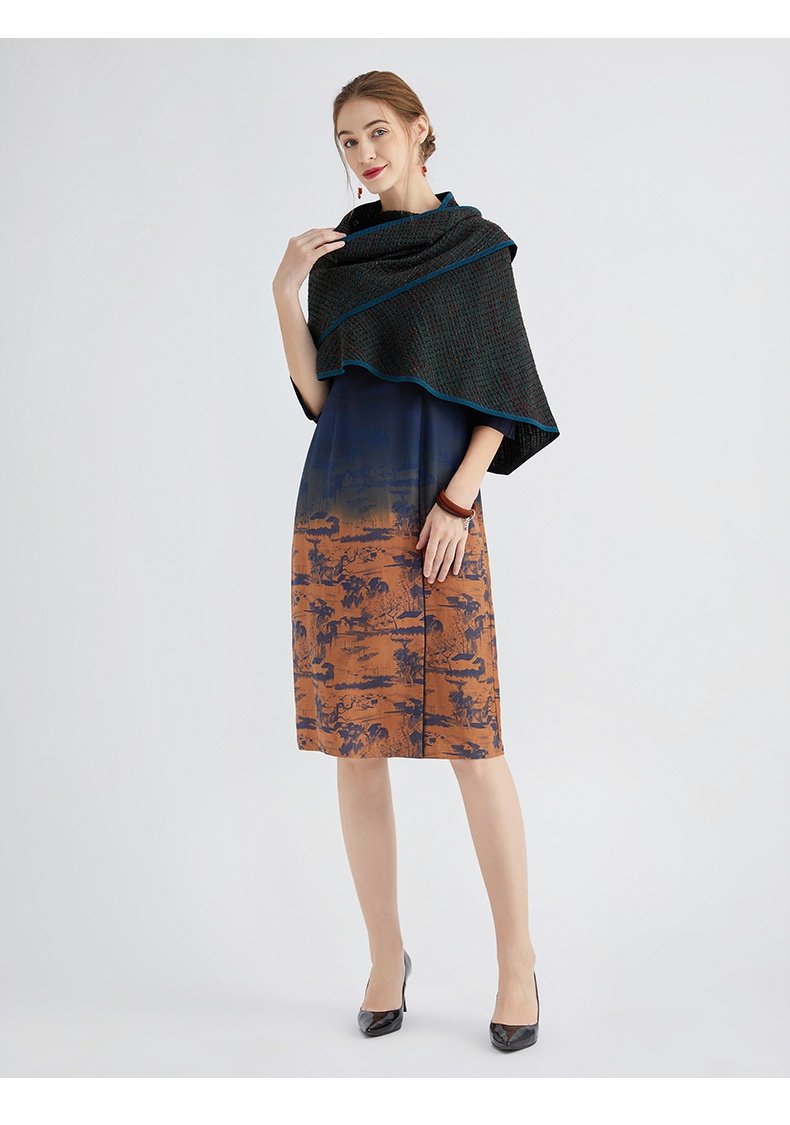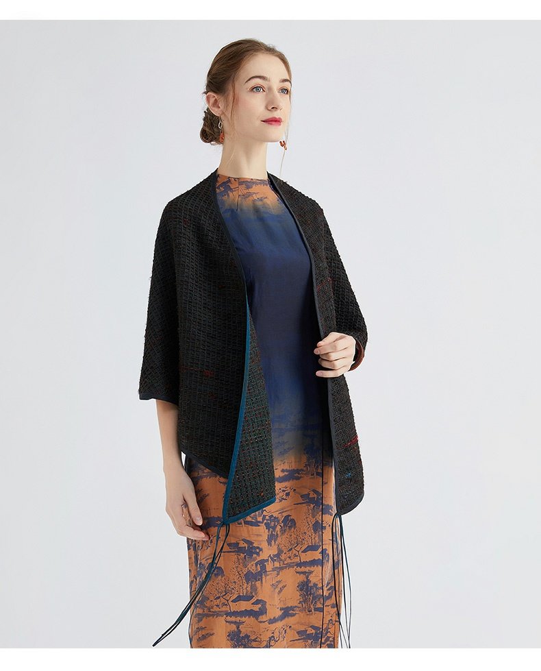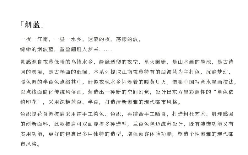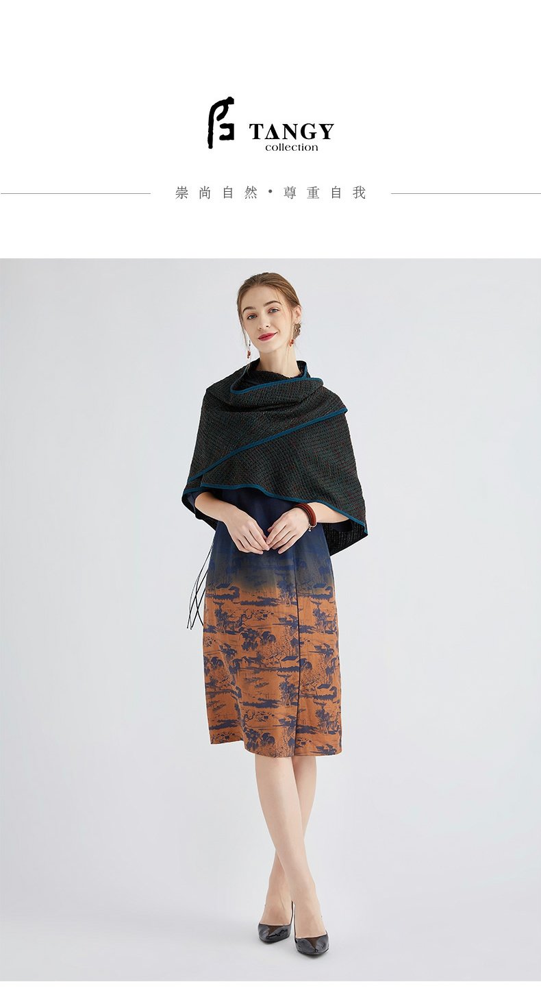 TANGY Collection / 天意精品 烟蓝系列 色织提花莨绸披肩