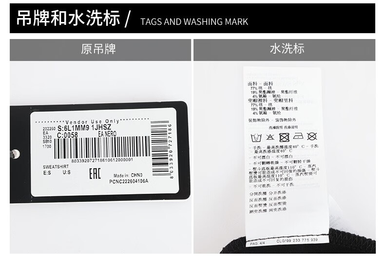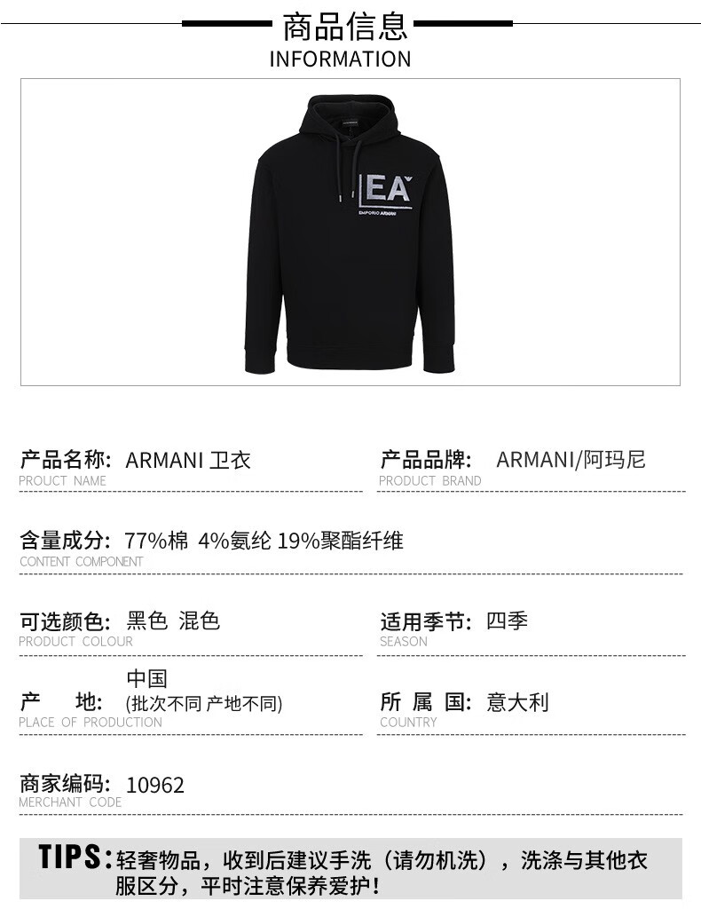 Emporio Armani 男士新品立体logo潮流休闲连帽卫衣外套 10962