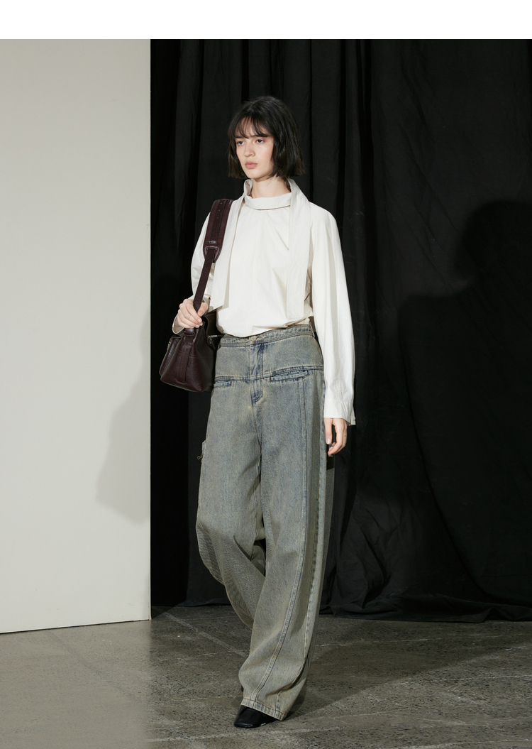 半圆/D24302406/水洗怀旧牛仔裤