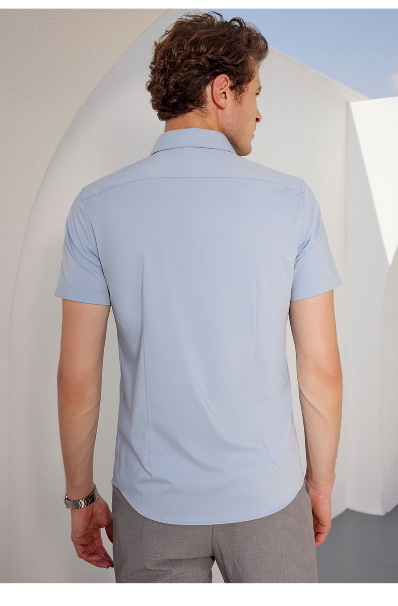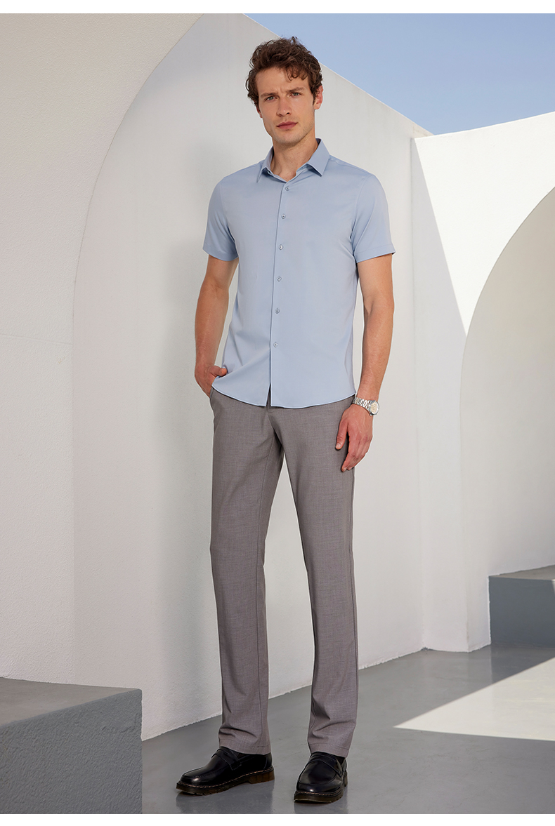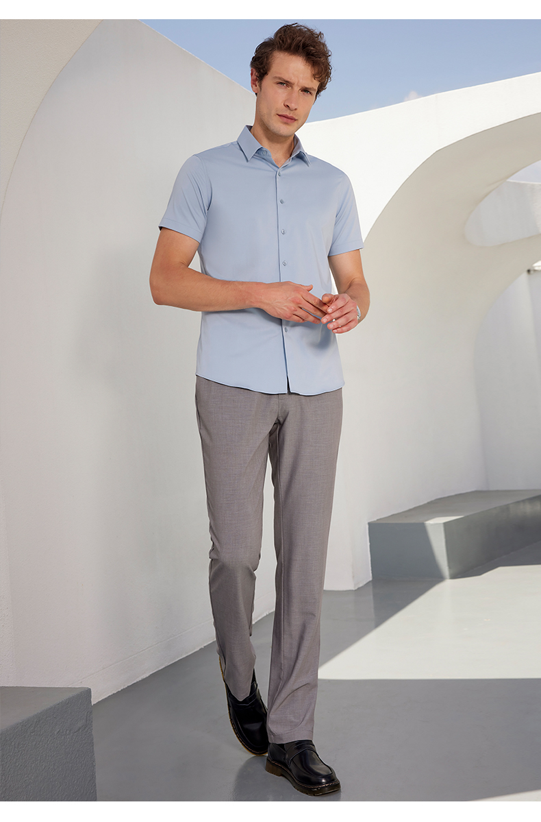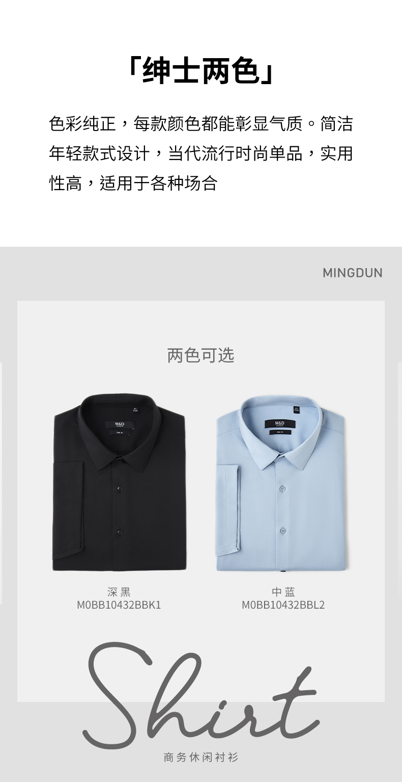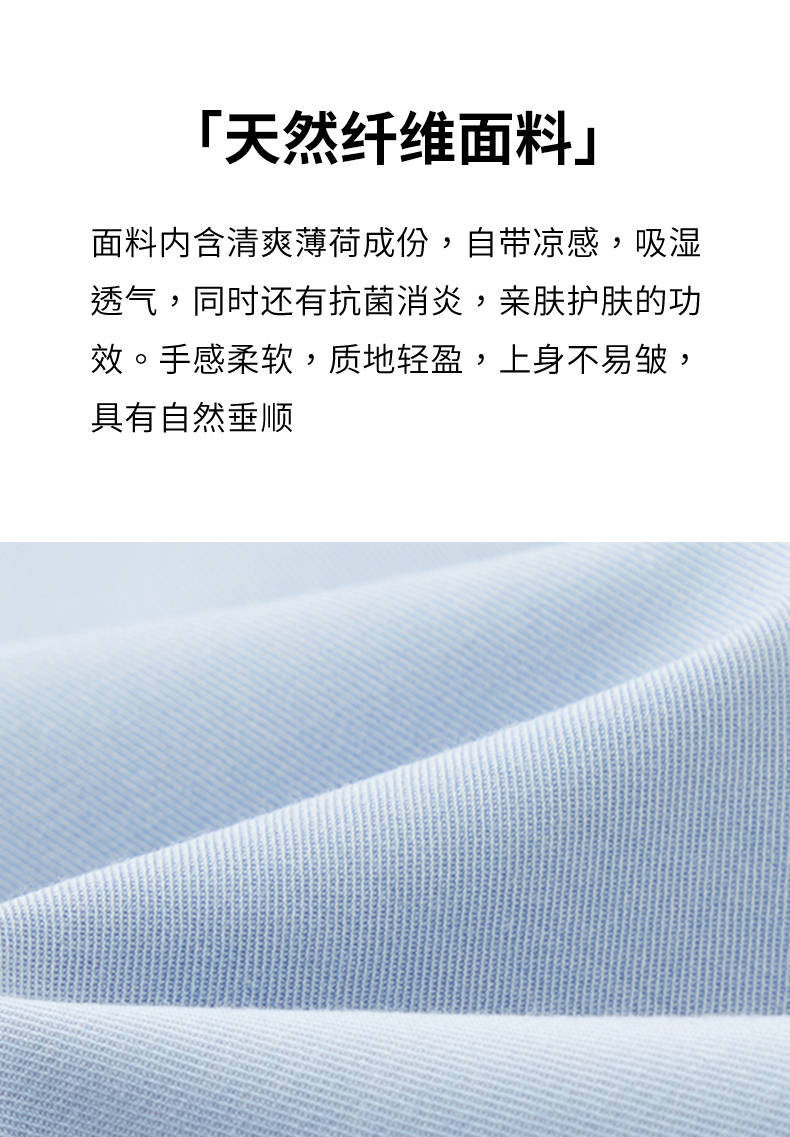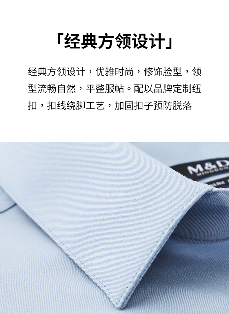 M&D/名盾天然薄荷凉感方领短袖衬衫商务男士夏半袖纯色半袖衬衣