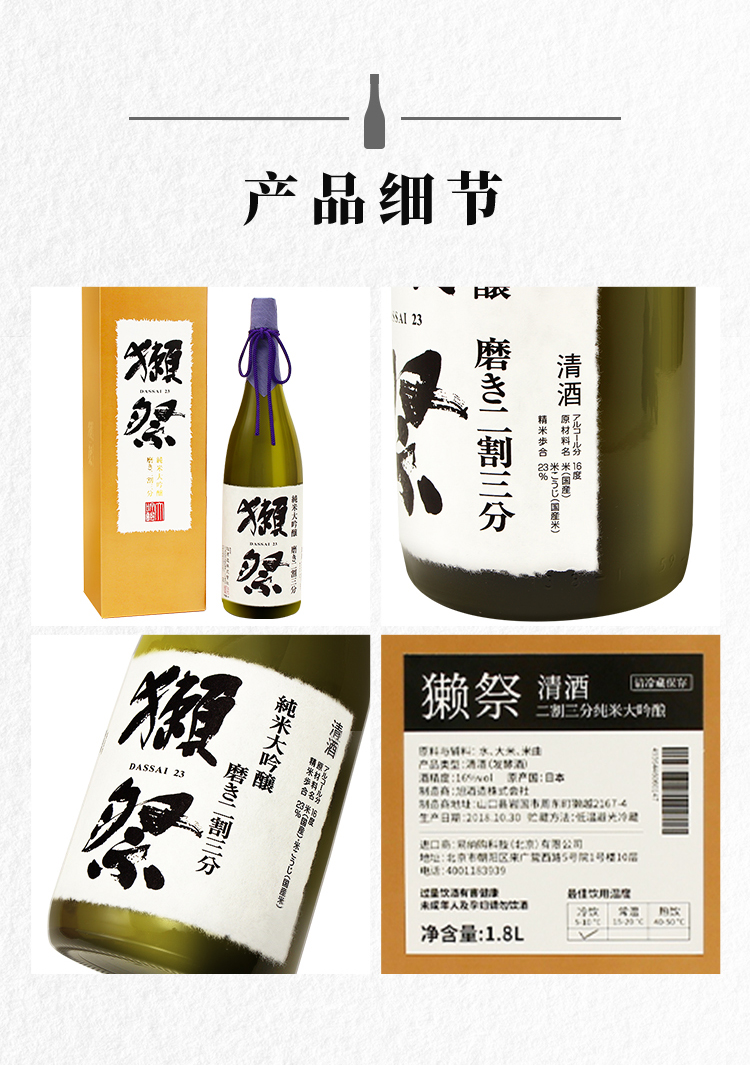 日本獭祭23纯米大吟酿1800ml/220007 二割三分纯米大吟酿果香优雅