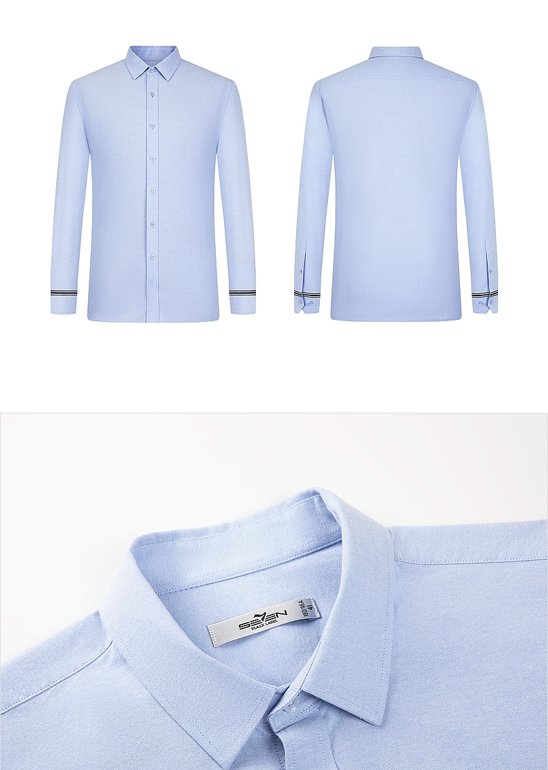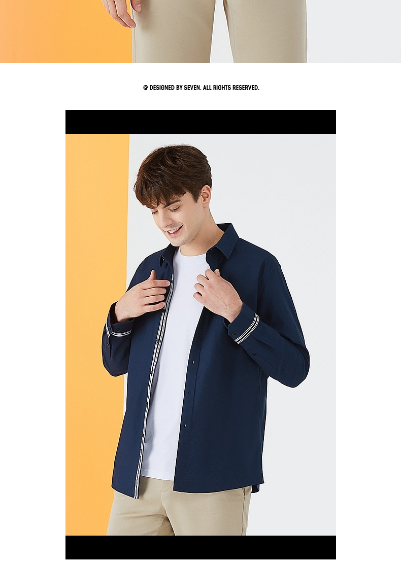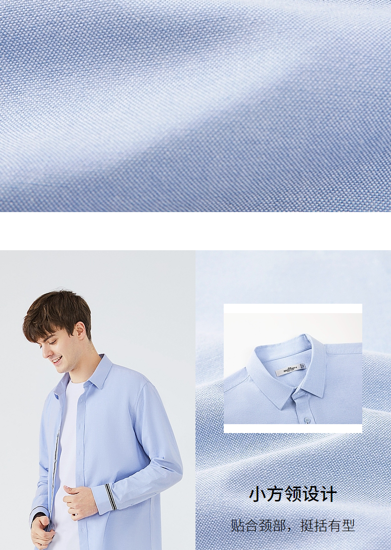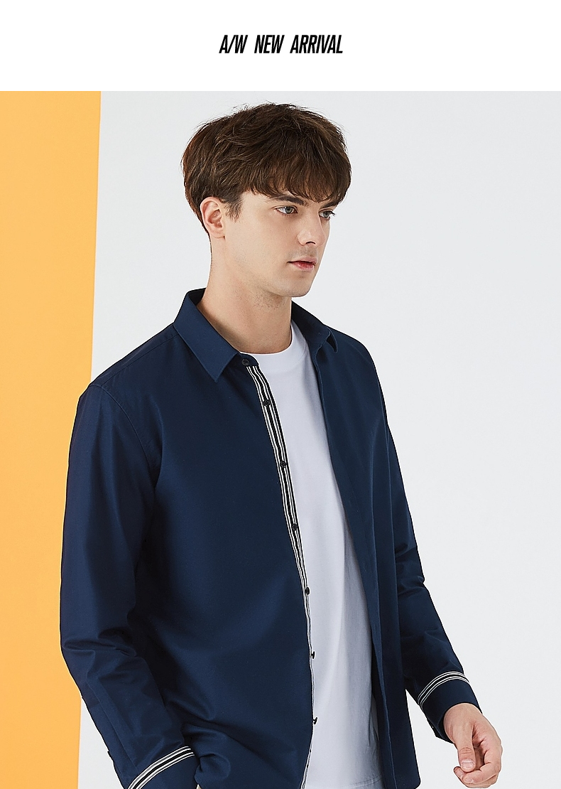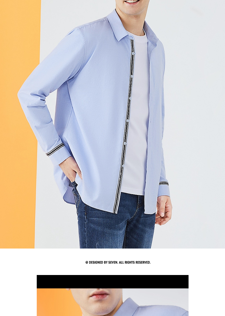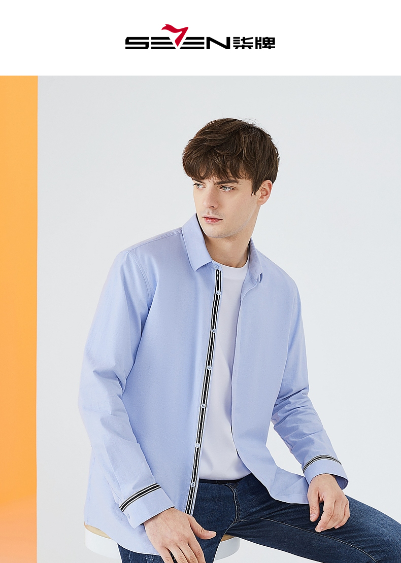 【特价】【牛津纺】柒牌纯棉衬衣织带拼接翻领男秋季123A70500