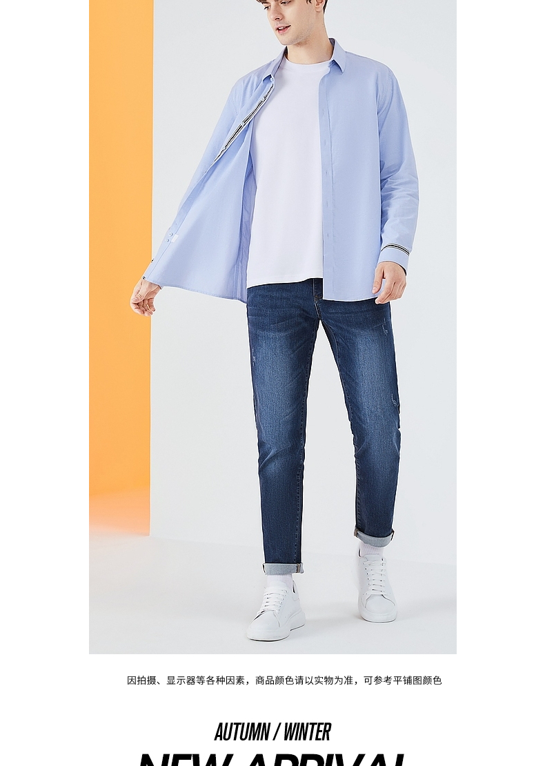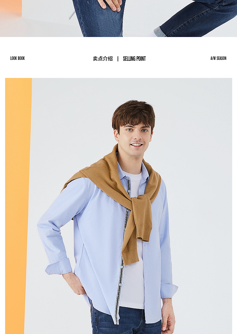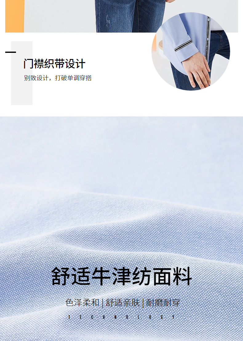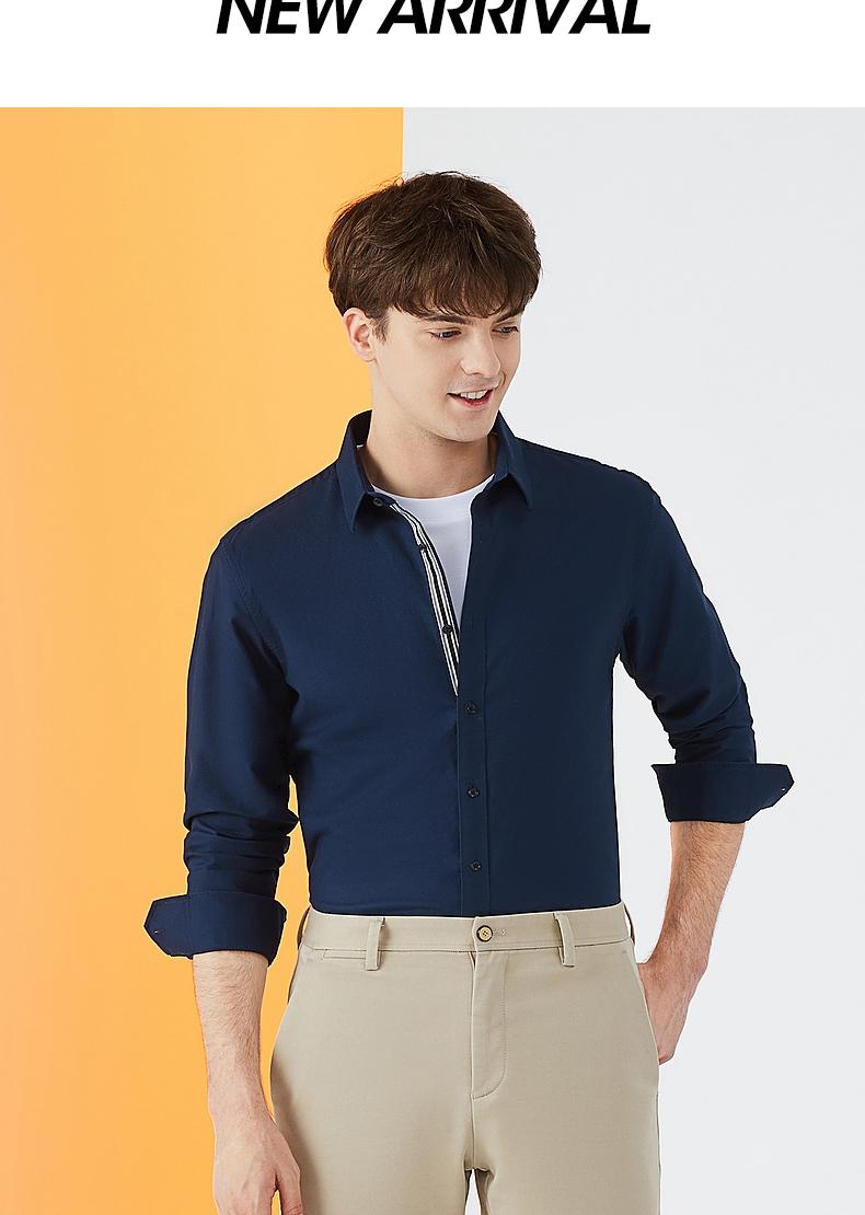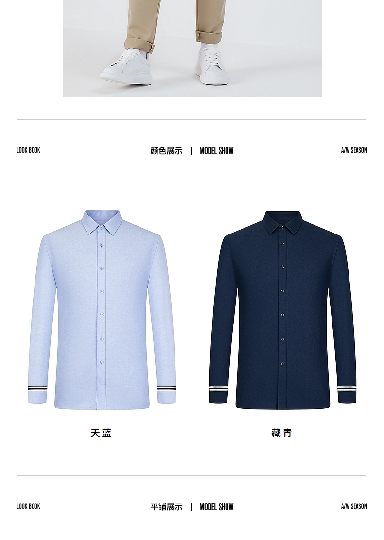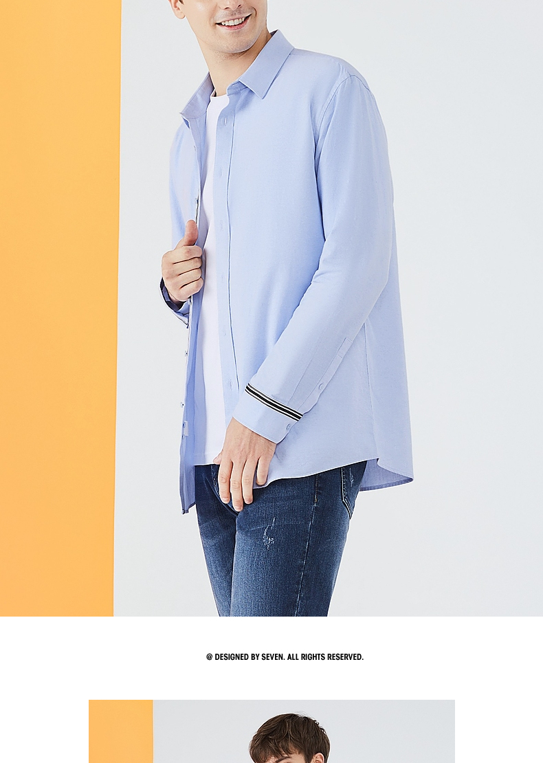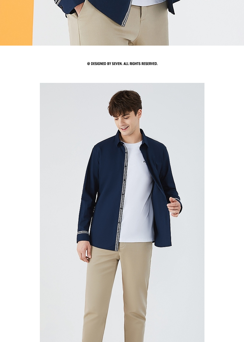 【特价】【牛津纺】柒牌纯棉衬衣织带拼接翻领男秋季123A70500