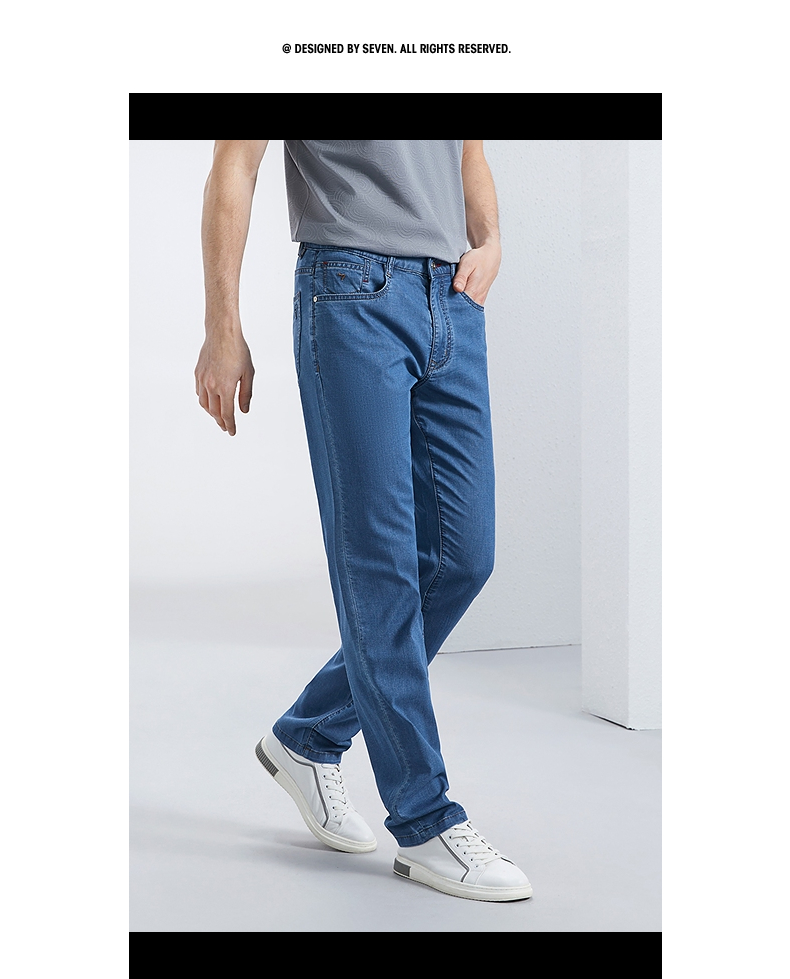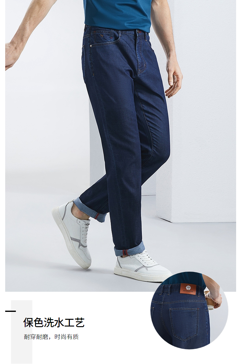 【含莱赛尔】柒牌凉感牛仔裤男2024夏季新款商务休闲耐穿舒适长裤 126H72840