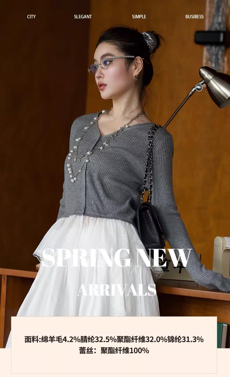 【门店同款】ENJOY春季“盐貌似糖”蕾丝拼接针织衫 161897699