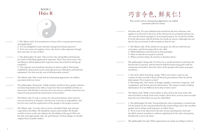 The Analects of Confucius has been one of the most widely read and studied books in China for the last 2,000 years, and continues to have a substantial influence on thought and values today. His words largely concern ethics, morality within the family, within marriage and within government, social relationships, justice and sincerity, valour and virtue. But whether you regard this as high philosophy or self- help for all the ages, whether your interest is in Chinese culture or leadership, whether it is spirituality or success that occupies your thoughts, Confucius has wise and accessible things to say about them all.