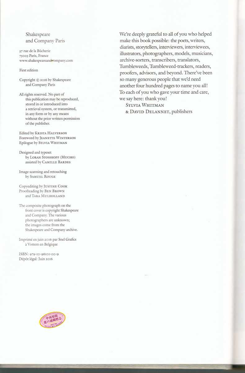 ...the biography reads like a multi-faceted oral history and is told in many layers: colored photographs, tumbleweed biographies, recountings from former employees and writers-in-residence. The story it tells is as varied, unique, and romantic as the shop is.(Kelsey Ford The Millions)
