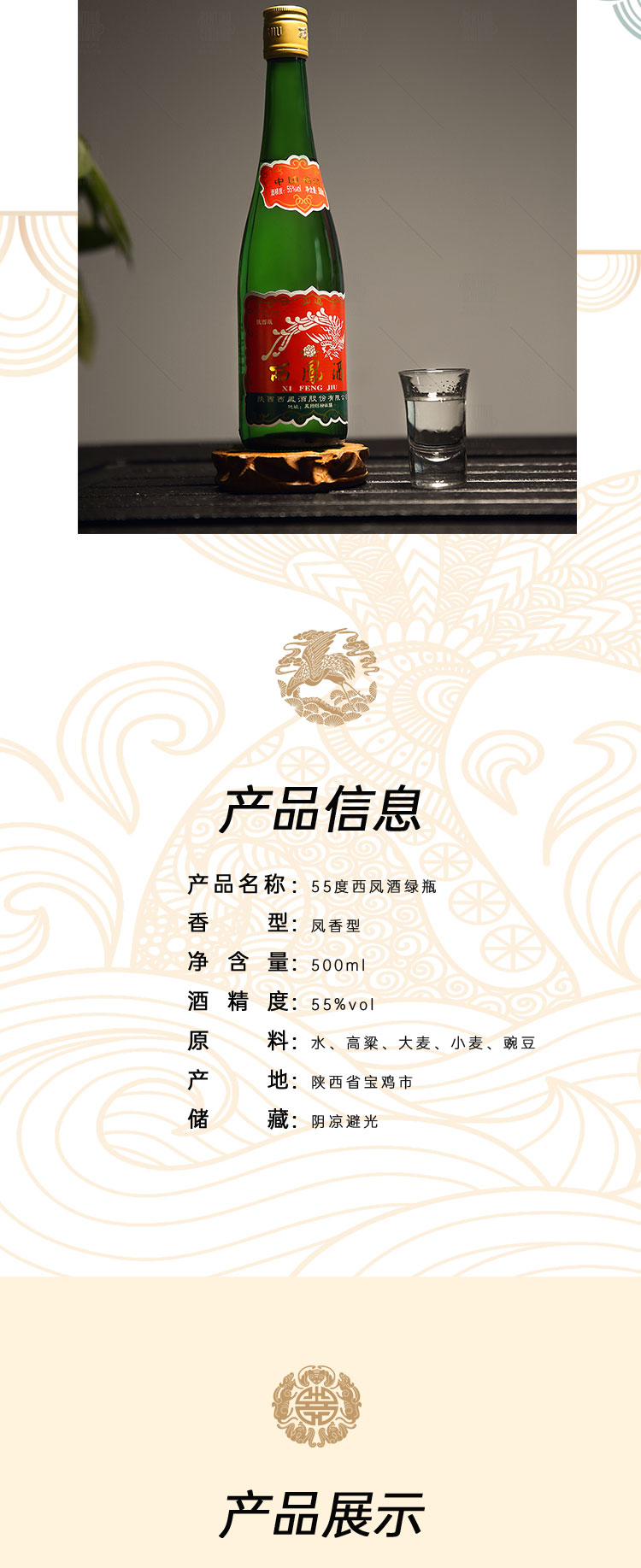 西凤酒(55度绿脖)凤香型白酒 500ml 55度