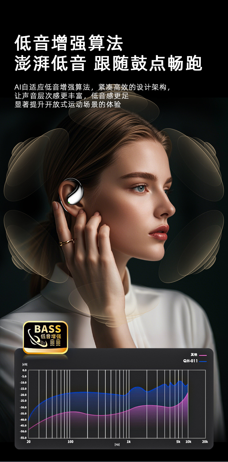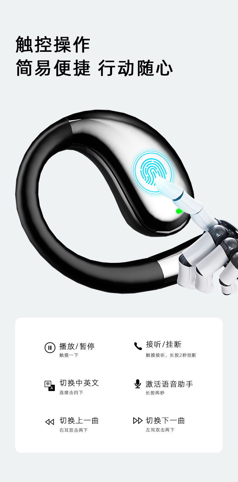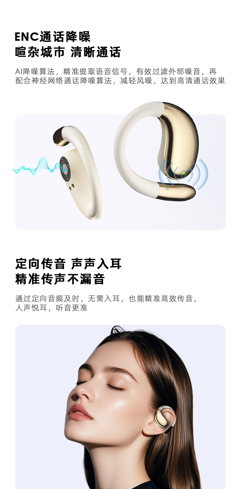 【新款蓝牙耳机】高音质挂耳式 不入耳无线运动定制 AI智能翻译耳机降噪