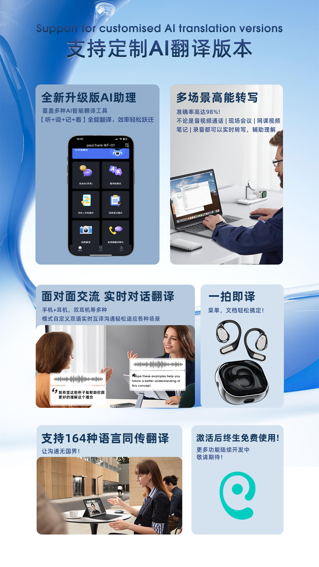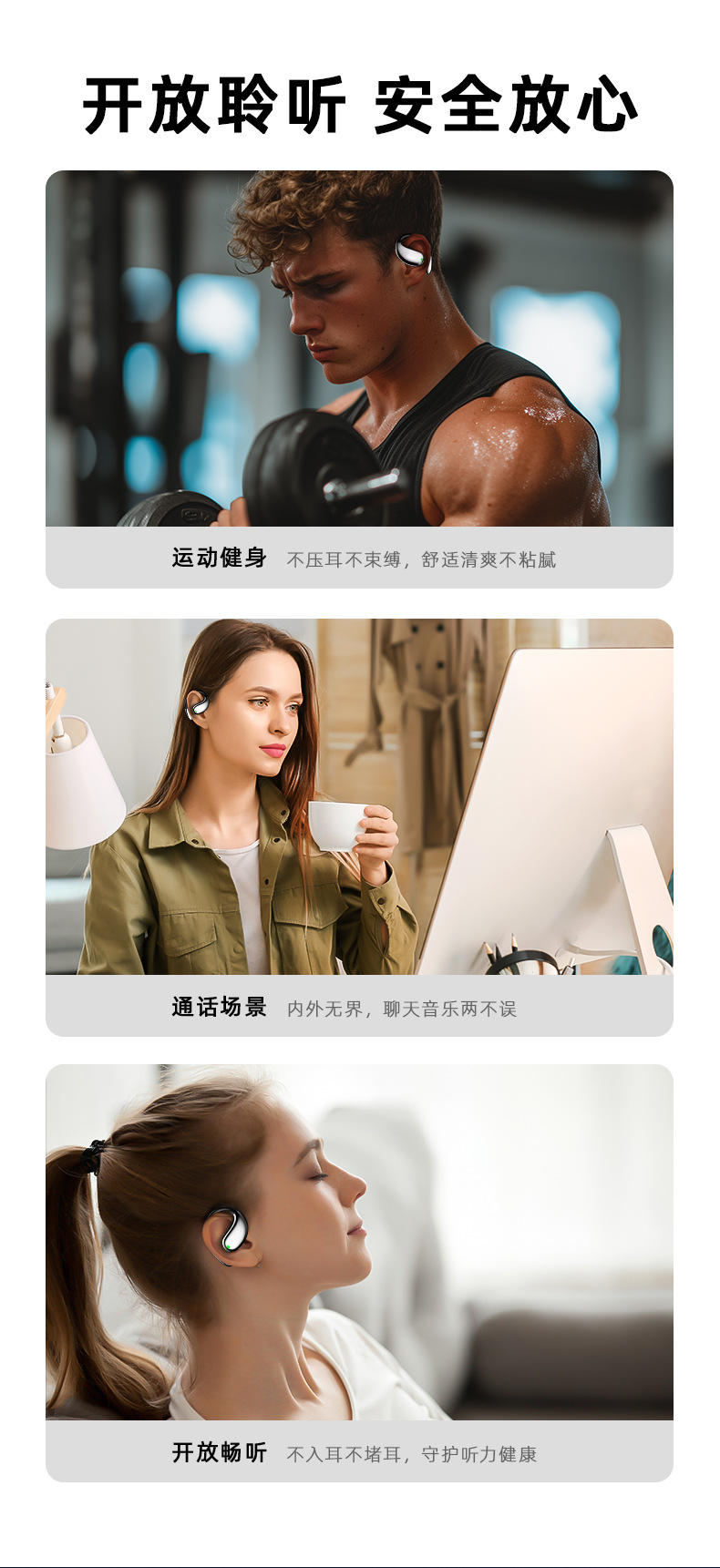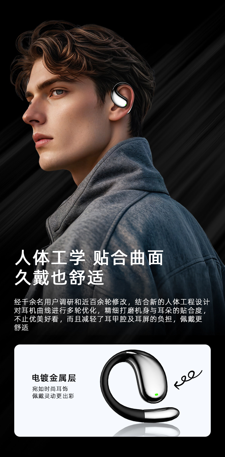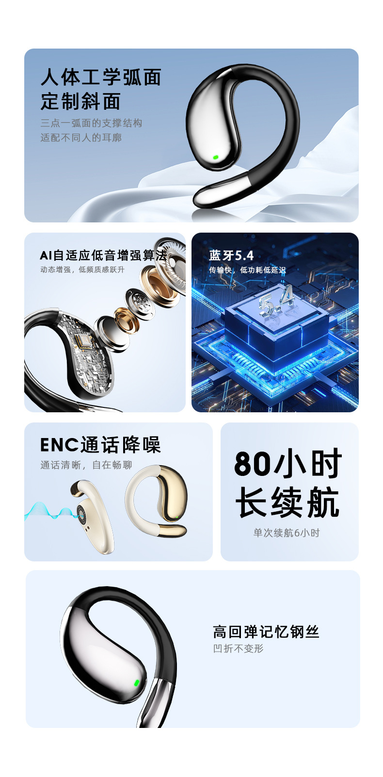 【新款蓝牙耳机】高音质挂耳式 不入耳无线运动定制 AI智能翻译耳机降噪